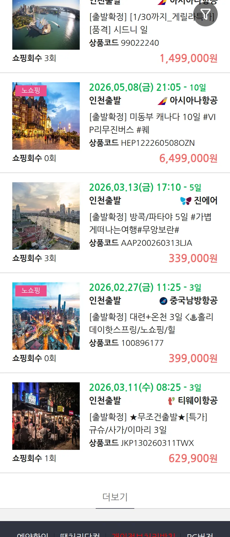 (2월5일(목)) 땡처리 99.9% 확정 패키지