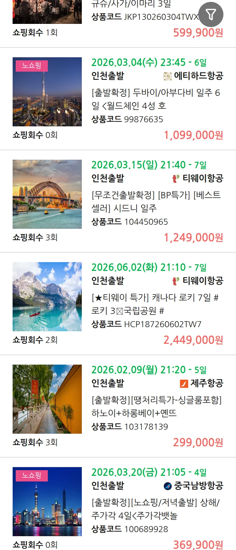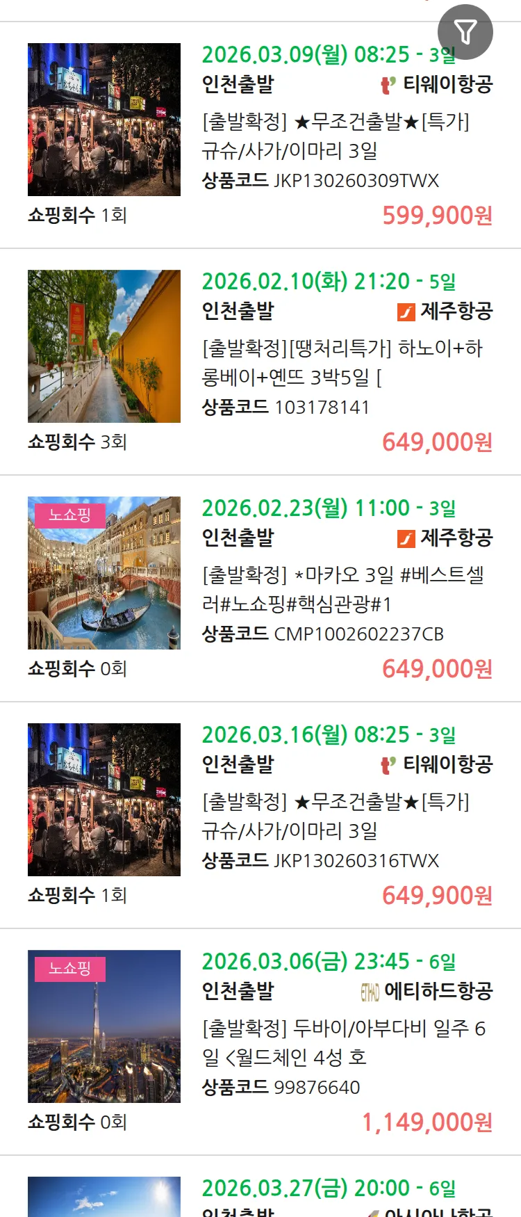 (2월6일(금)) 땡처리 99.9% 확정 패키지