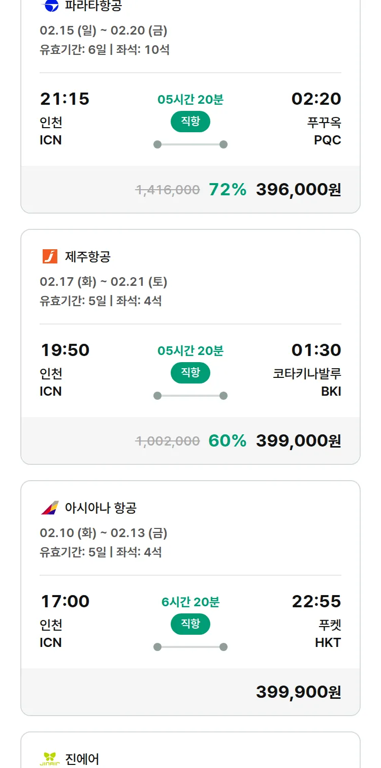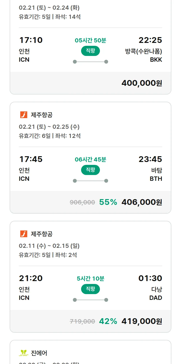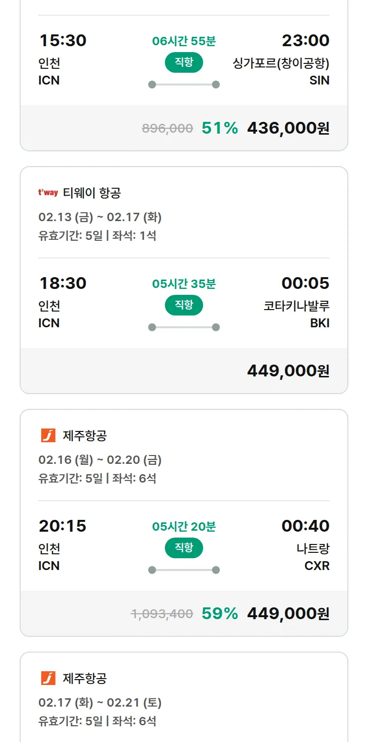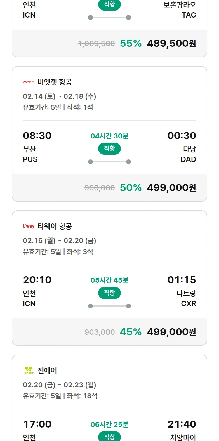 (2월6일(금)) 땡처리 특가 항공권