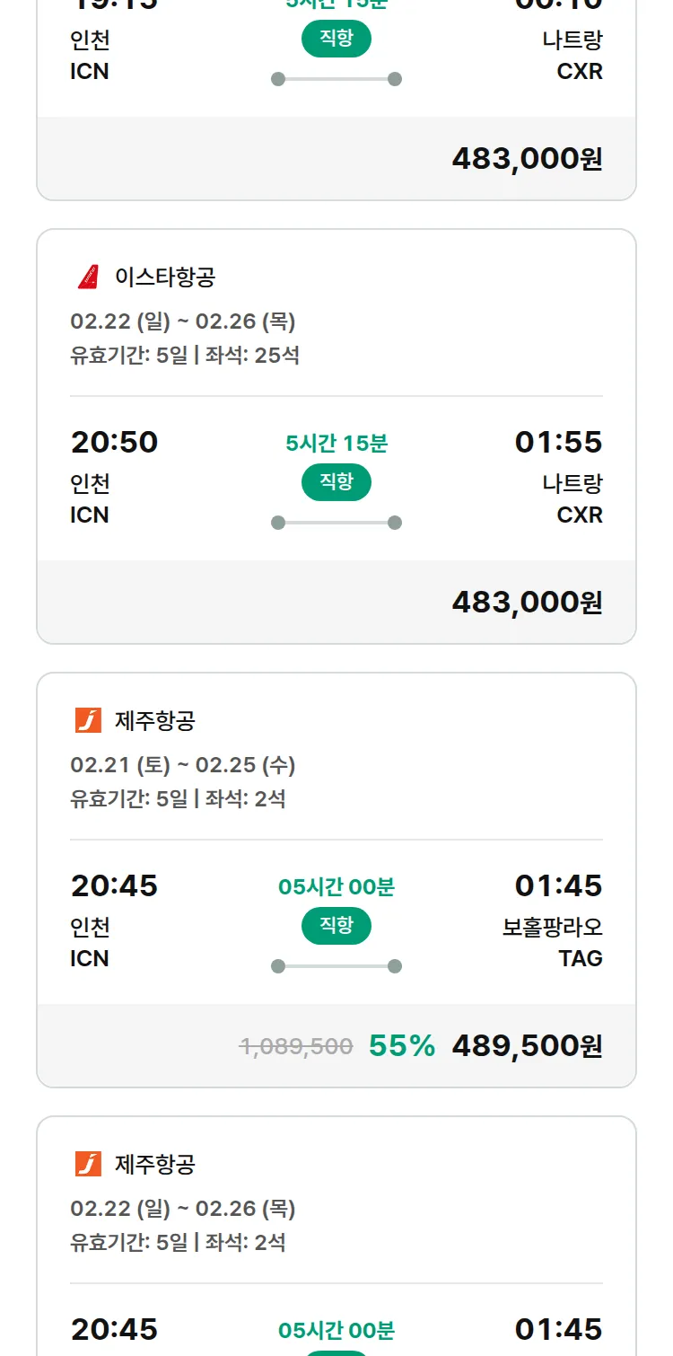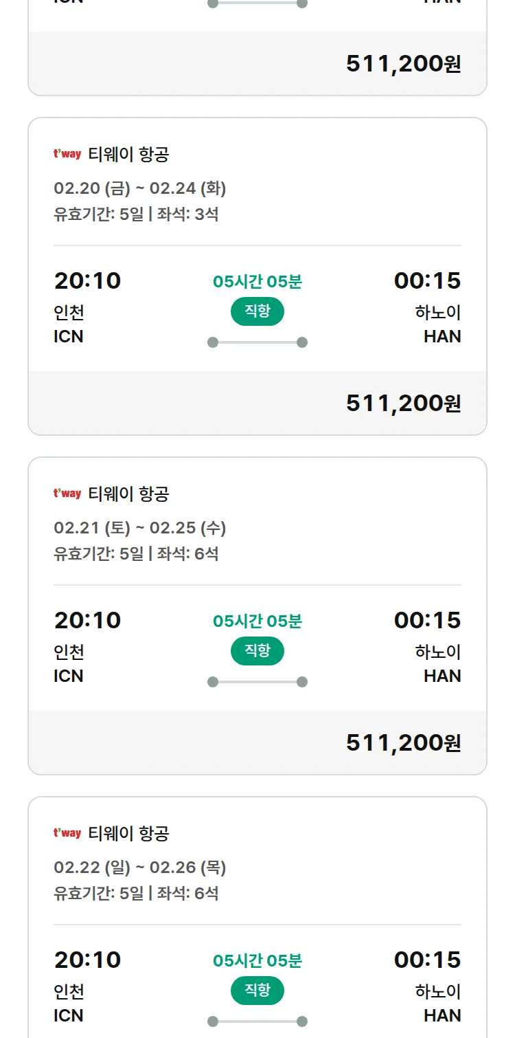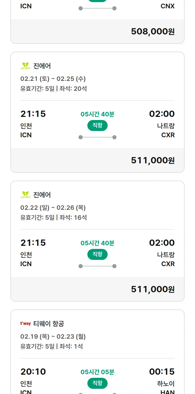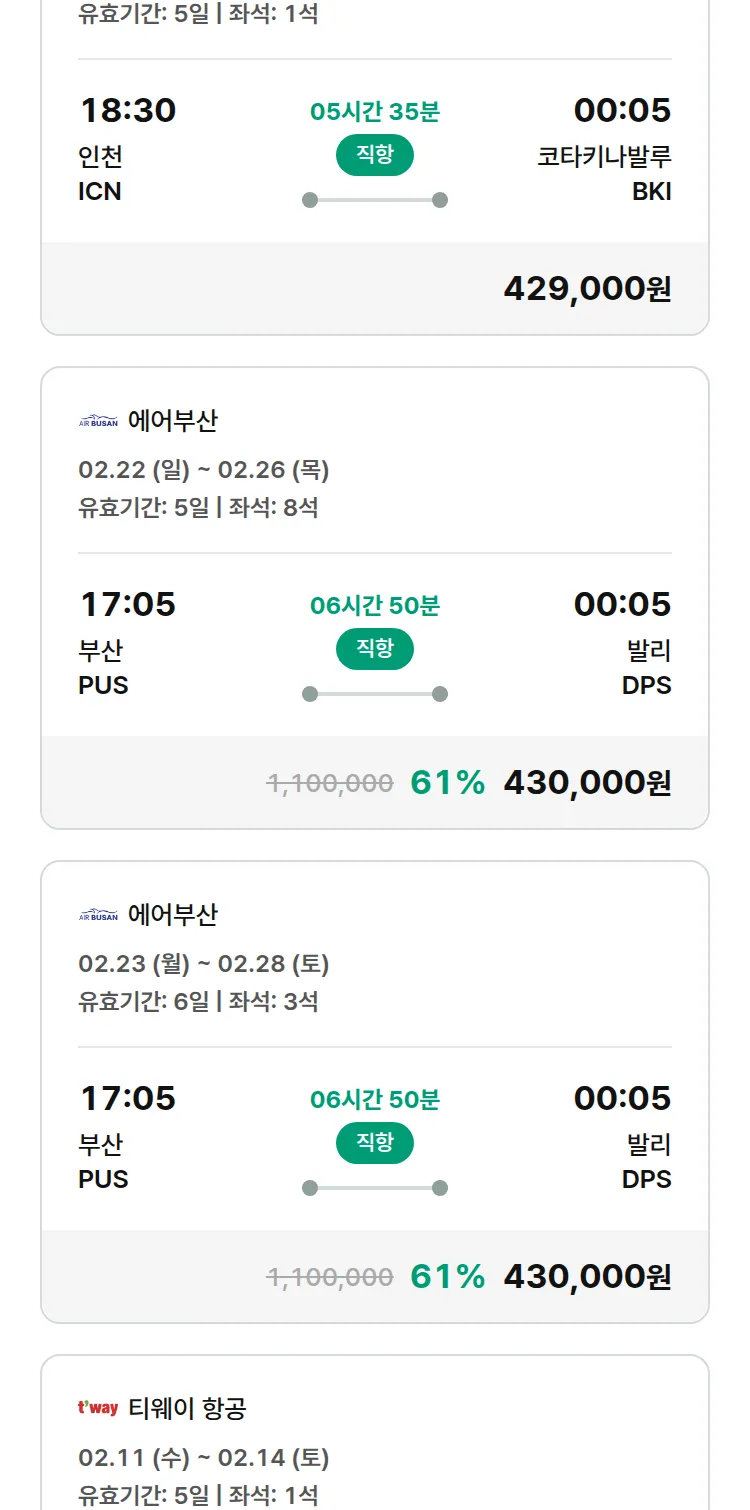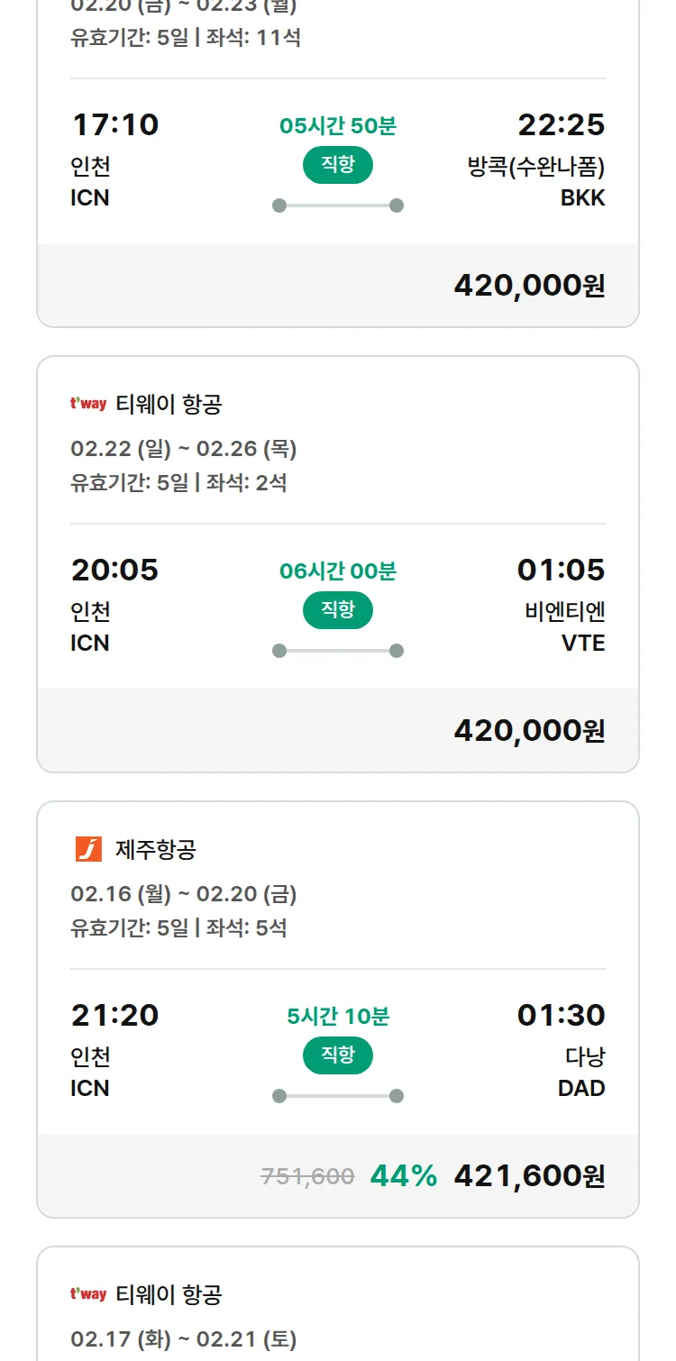 (2월5일(목)) 땡처리 특가 항공권