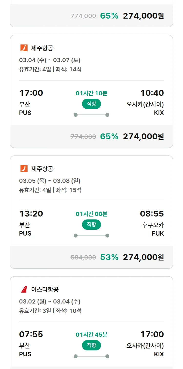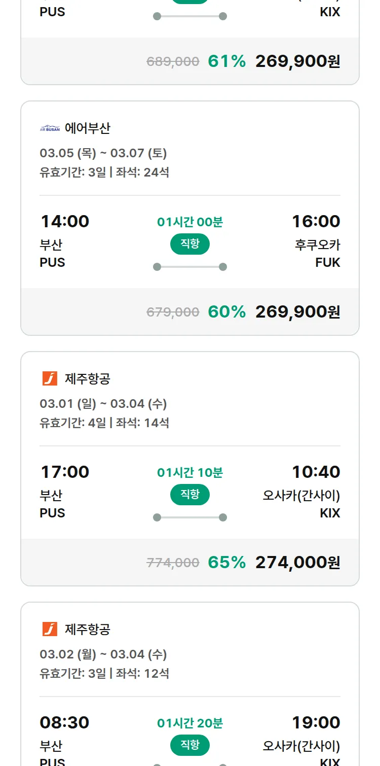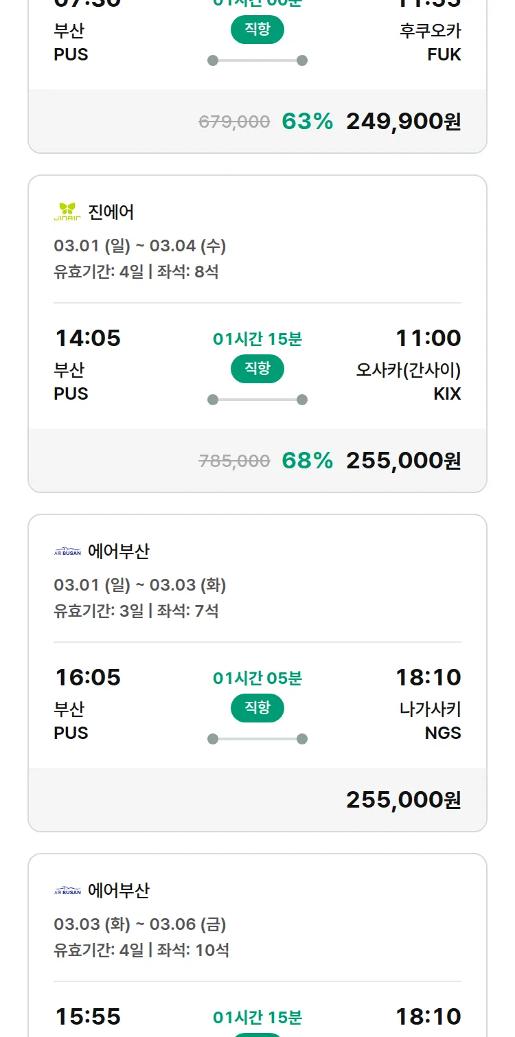 (2월6일(금)) 모두투어 일본 특가 항공권