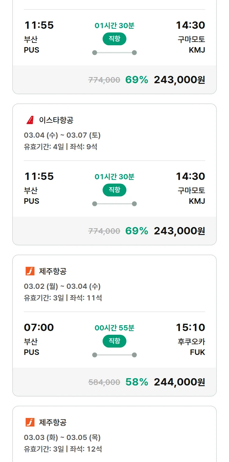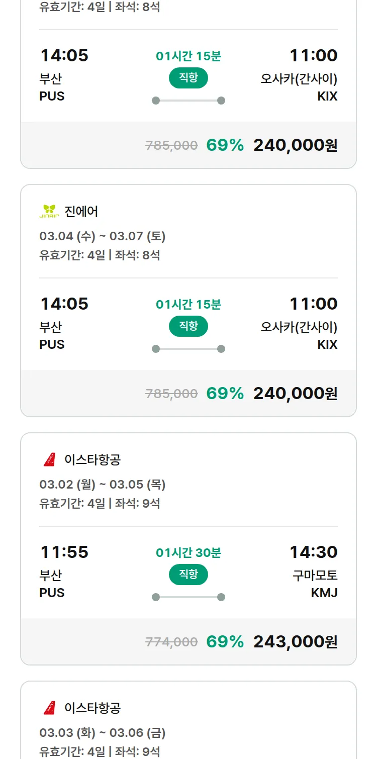 (2월5일(목)) 모두투어 일본 특가 항공권