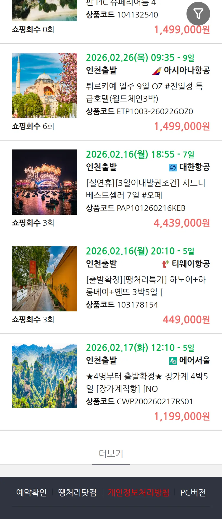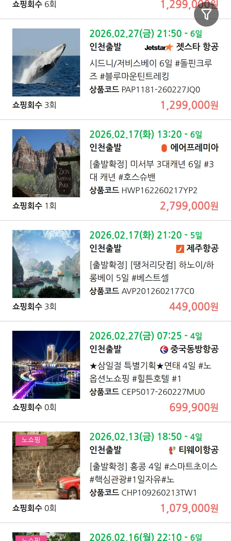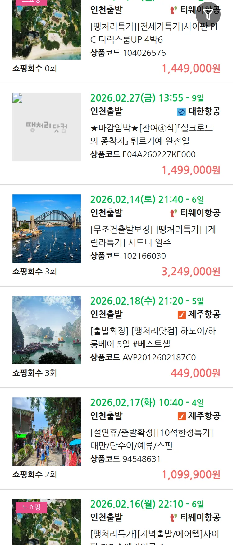 (2월6일(금)) 땡처리 연휴 패키지 패키지