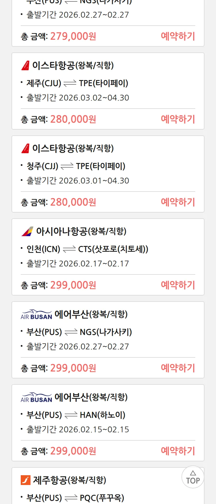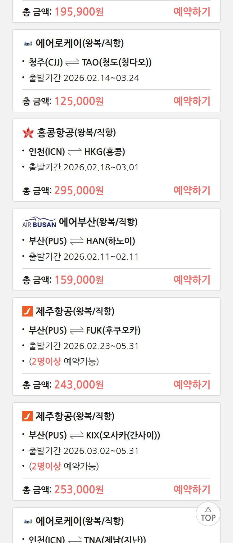 (2월7일(토)) 땡처리 99.9% 확정 패키지