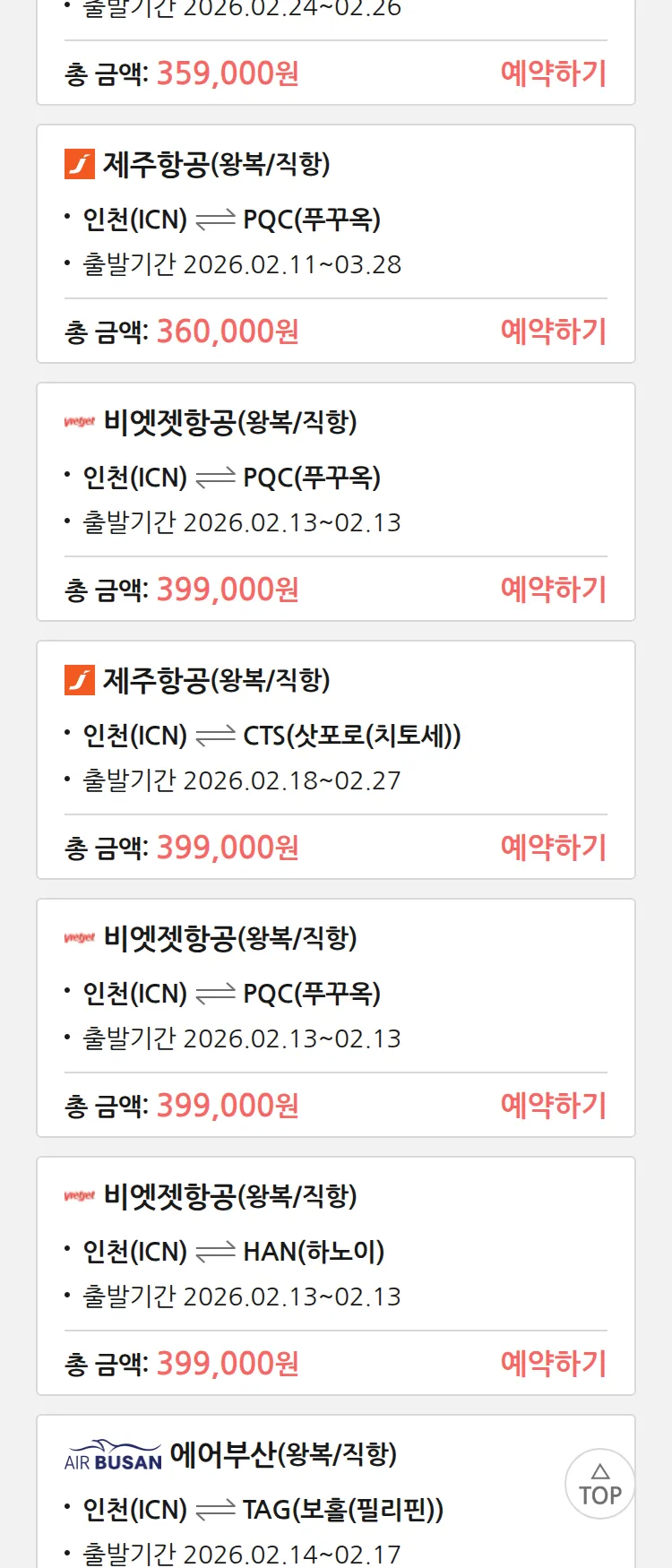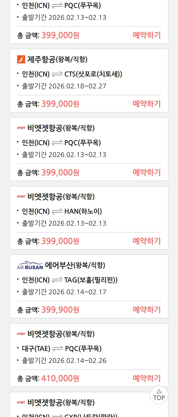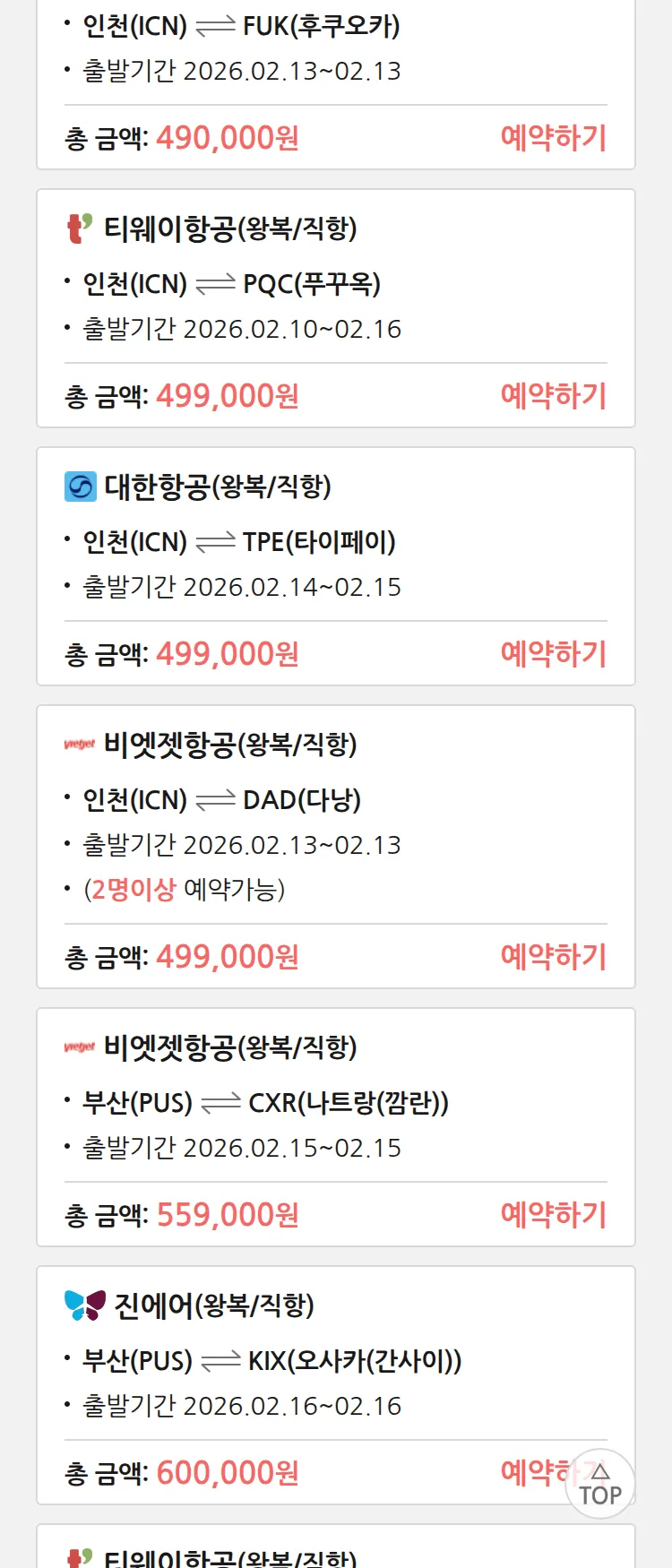 (2월6일(금)) 땡처리 연휴 패키지 패키지