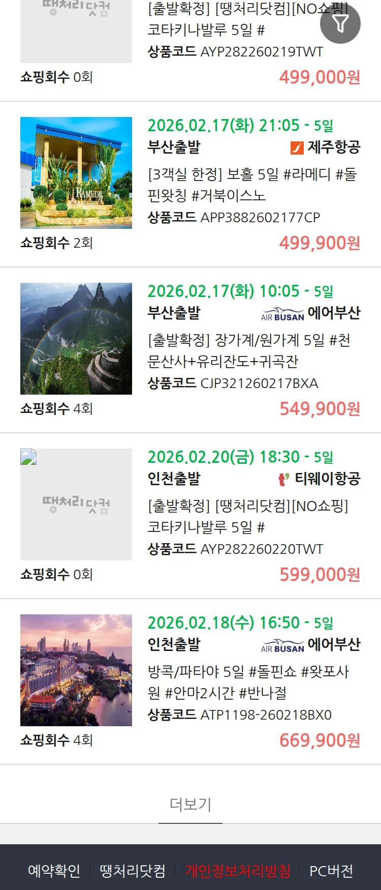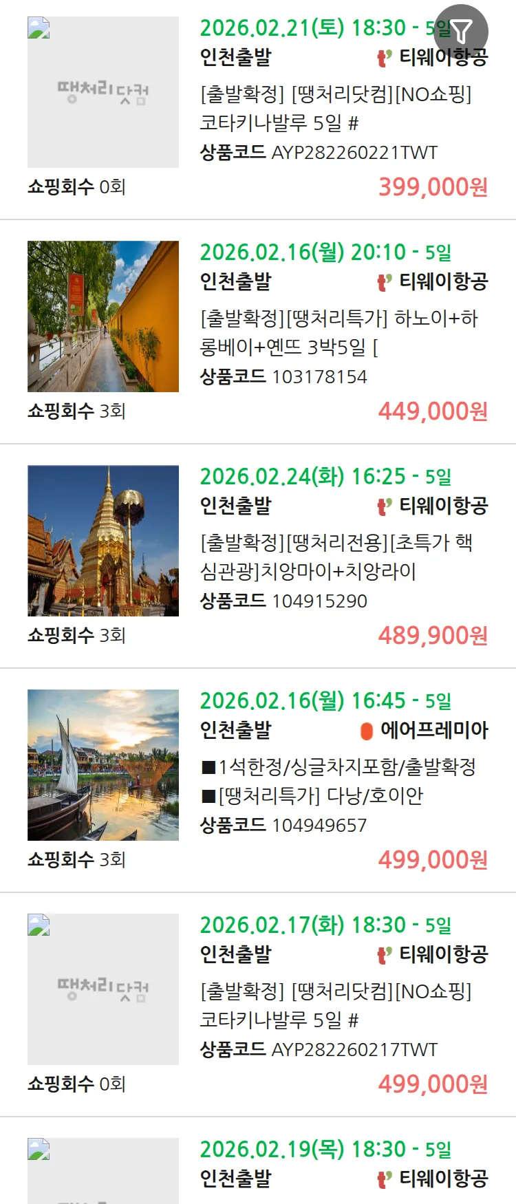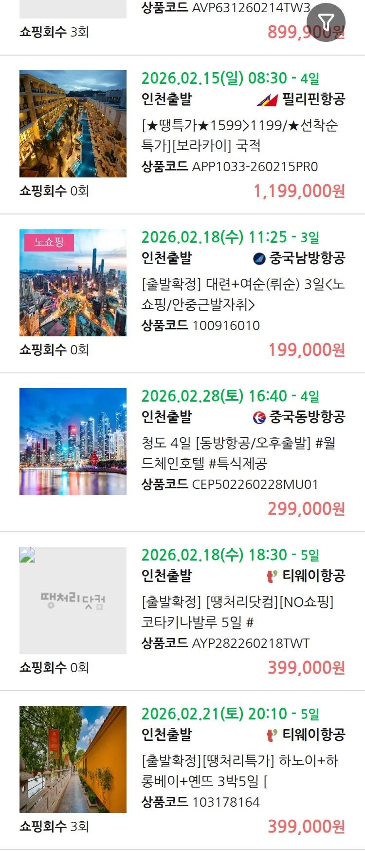 (2월8일(일)) 땡처리 99.9% 확정 패키지