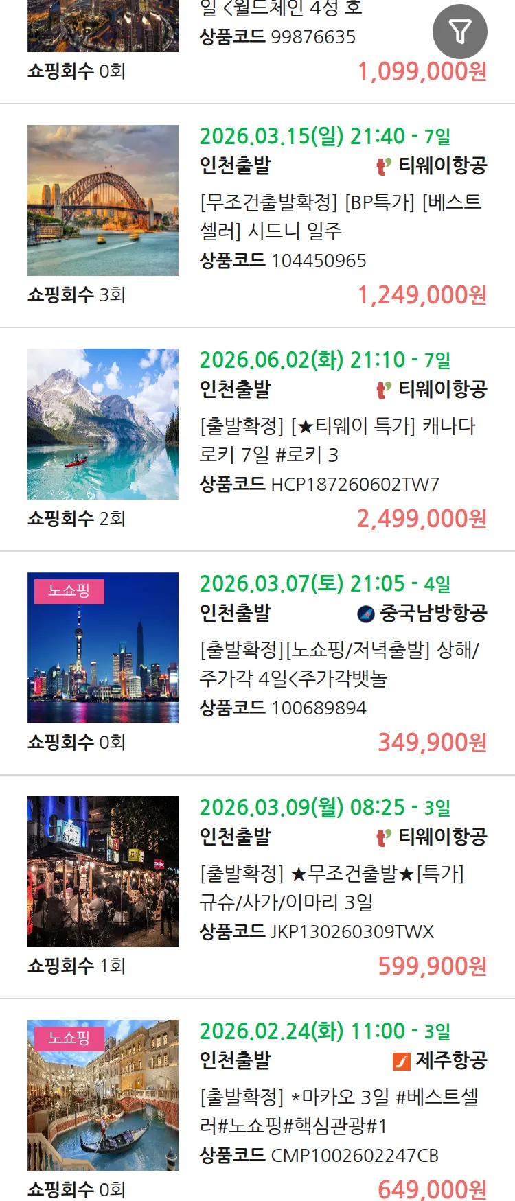 (2월8일(일)) 땡처리 99.9% 확정 패키지