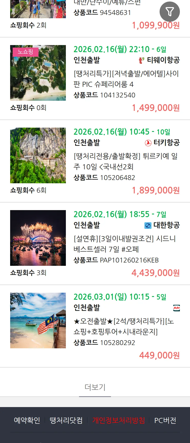 (2월 10일(화)) 땡처리 연휴 패키지 패키지