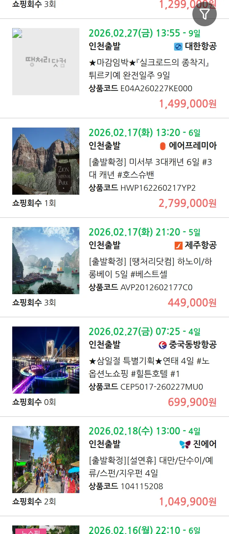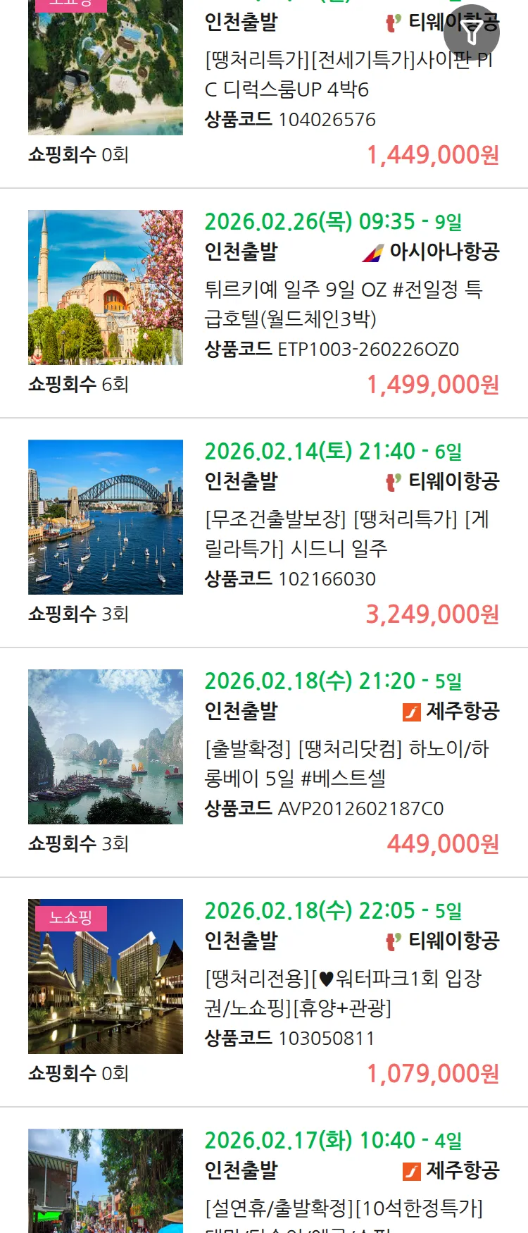 (2월 10일(화)) 땡처리 99.9% 확정 패키지