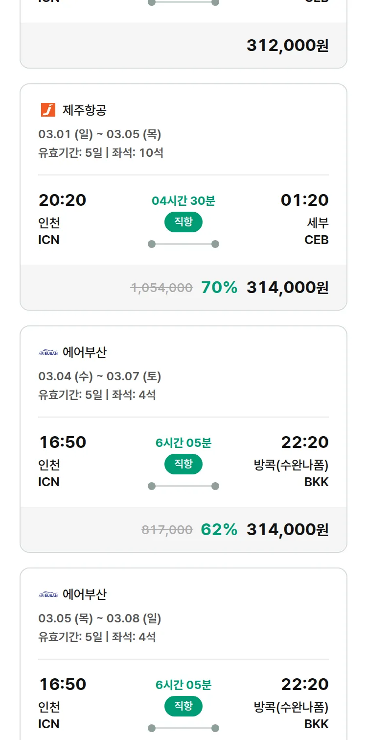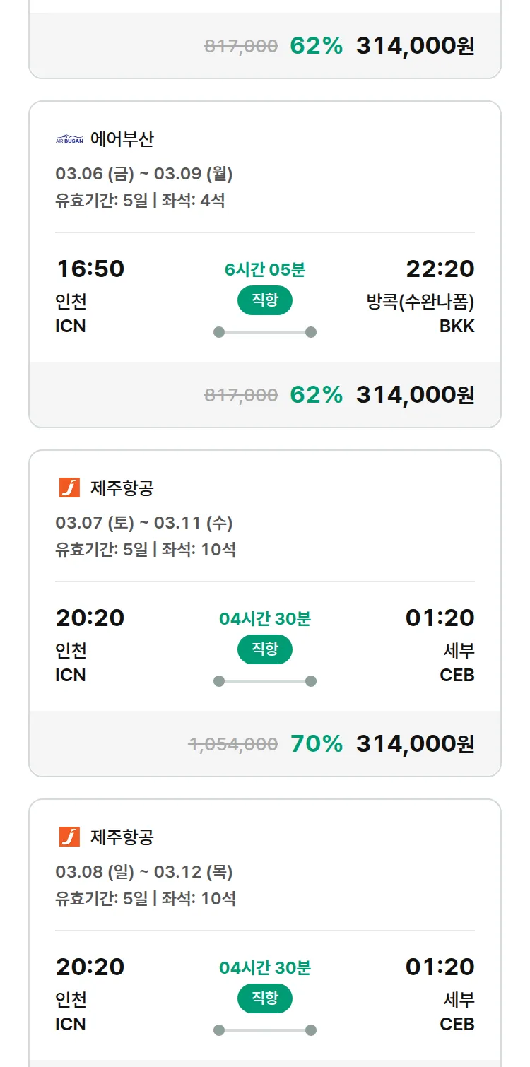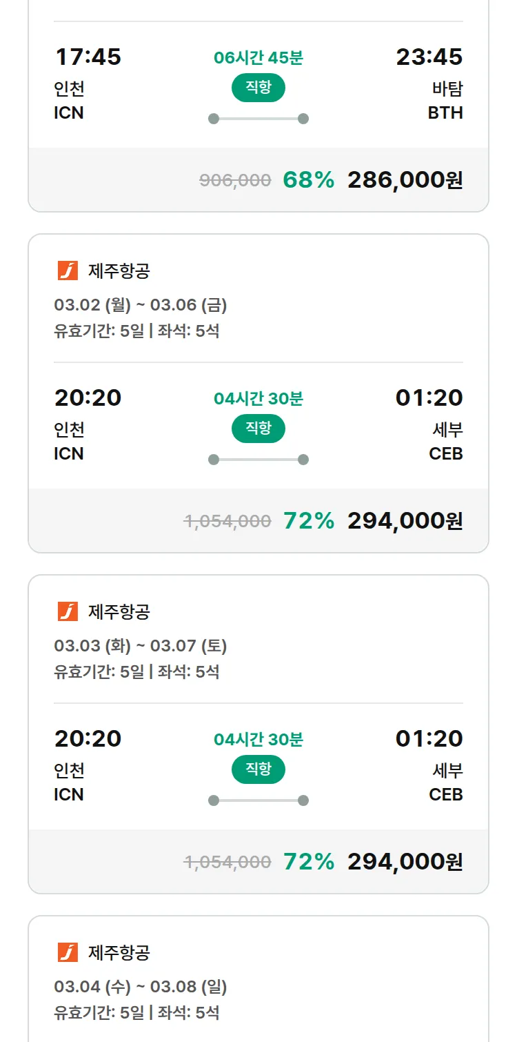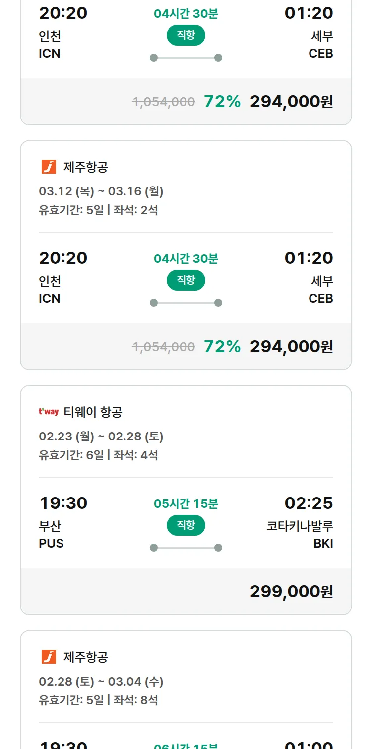 (2월8일(일)) 땡처리 특가 항공권