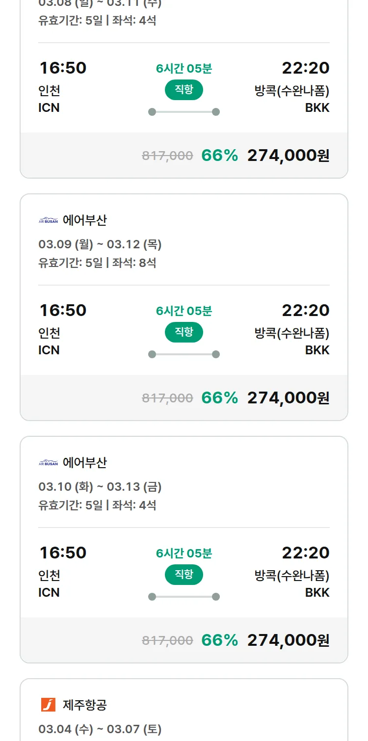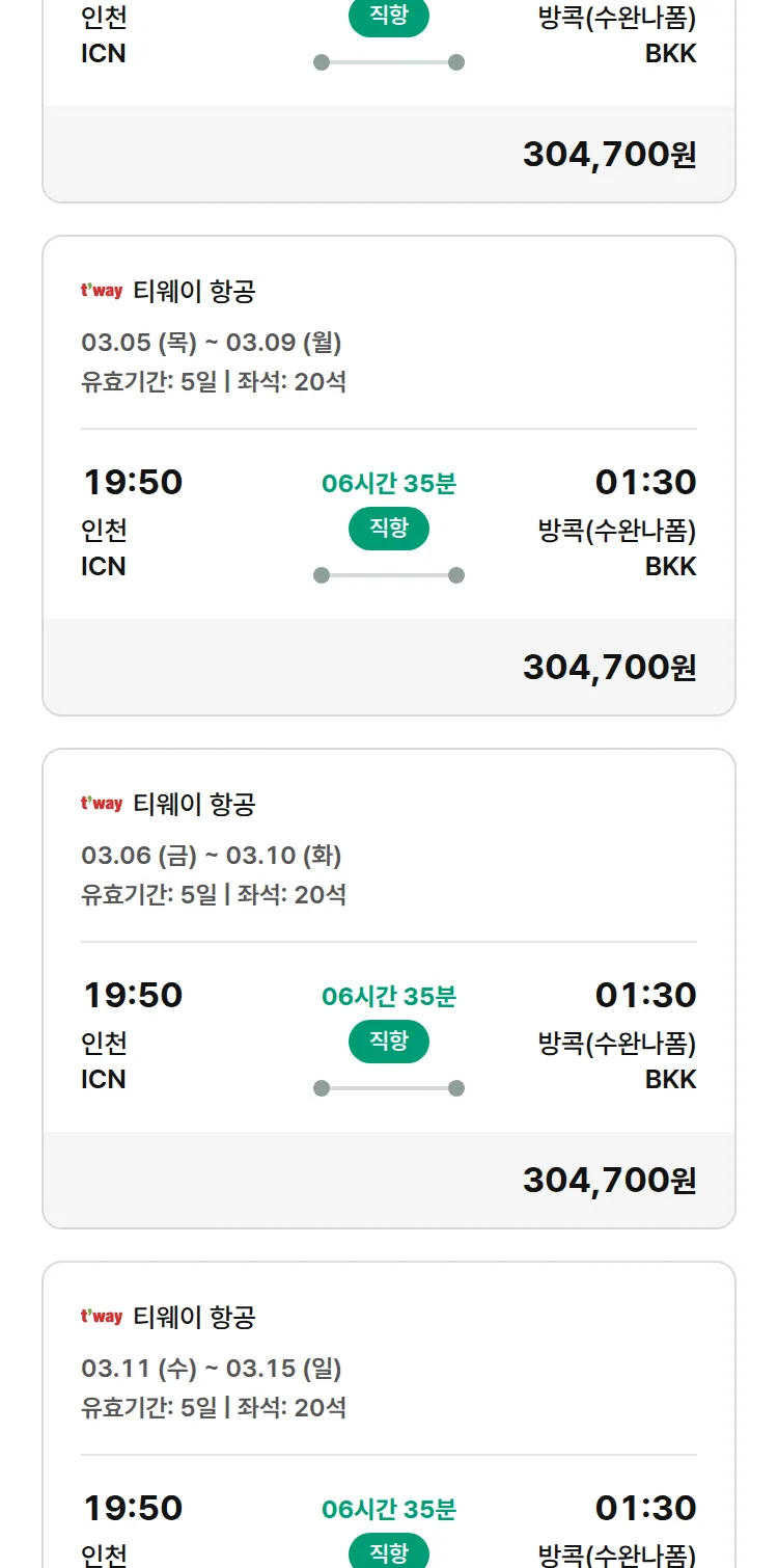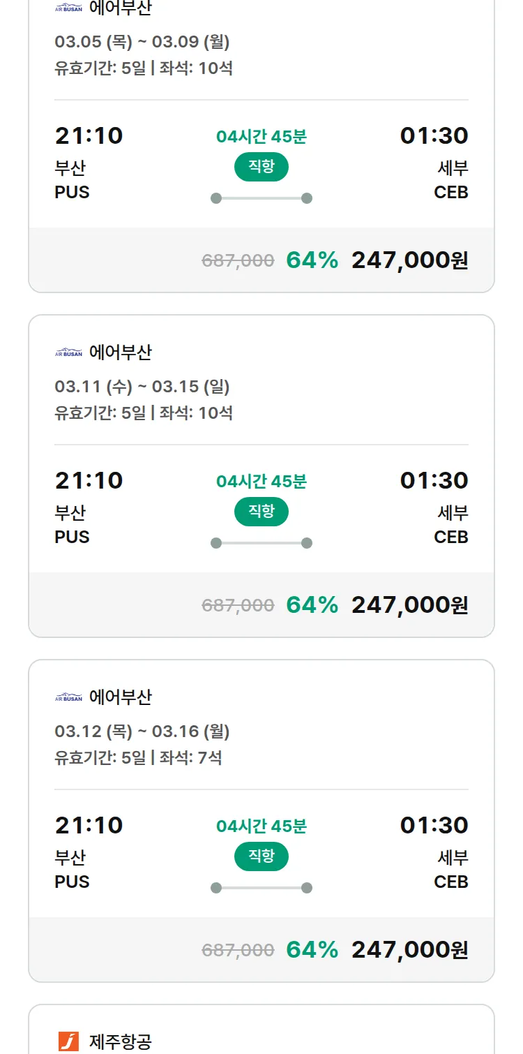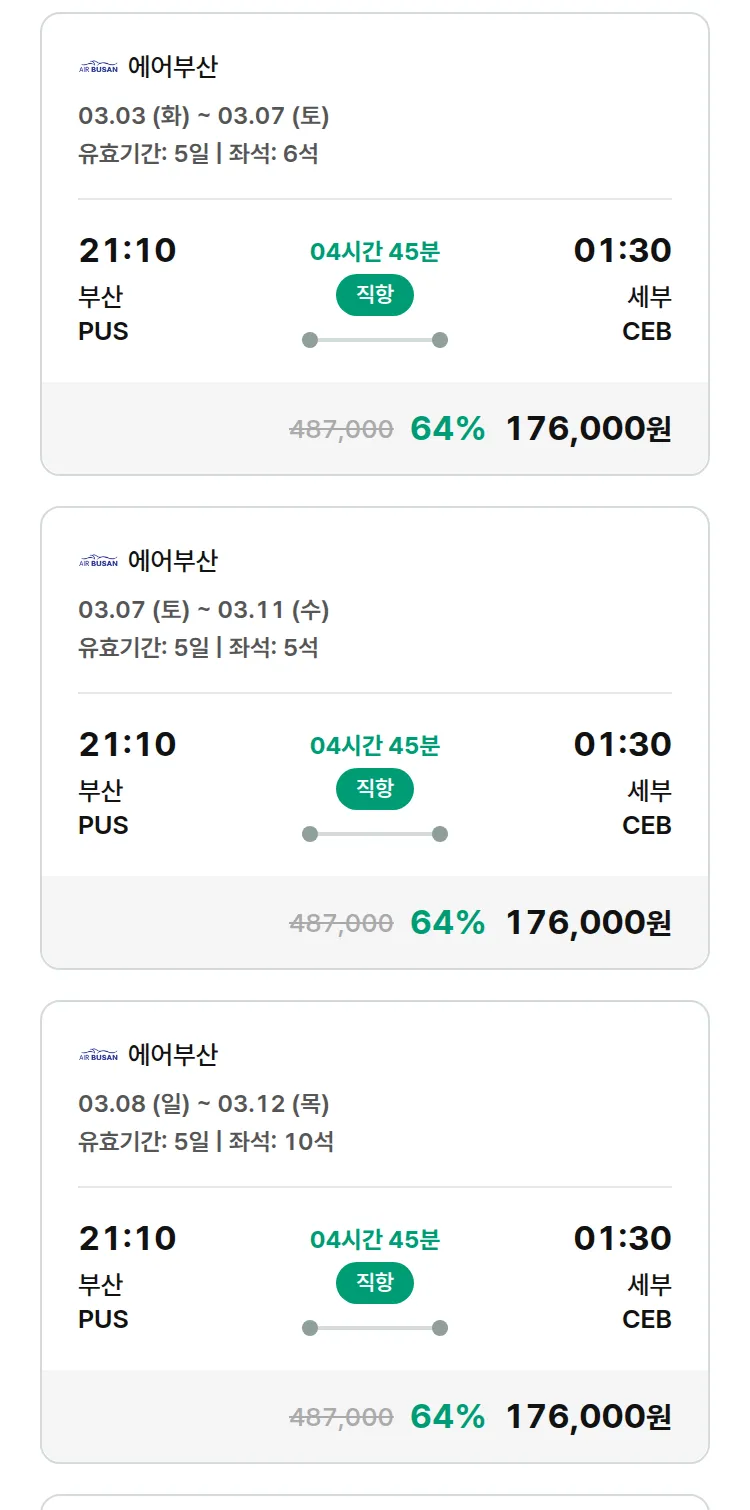 (2월8일(일)) 땡처리 특가 항공권