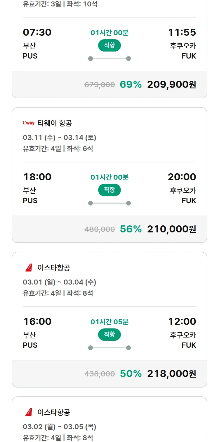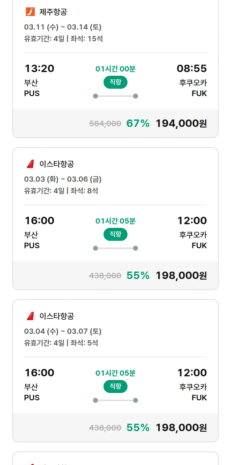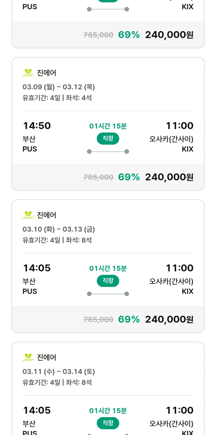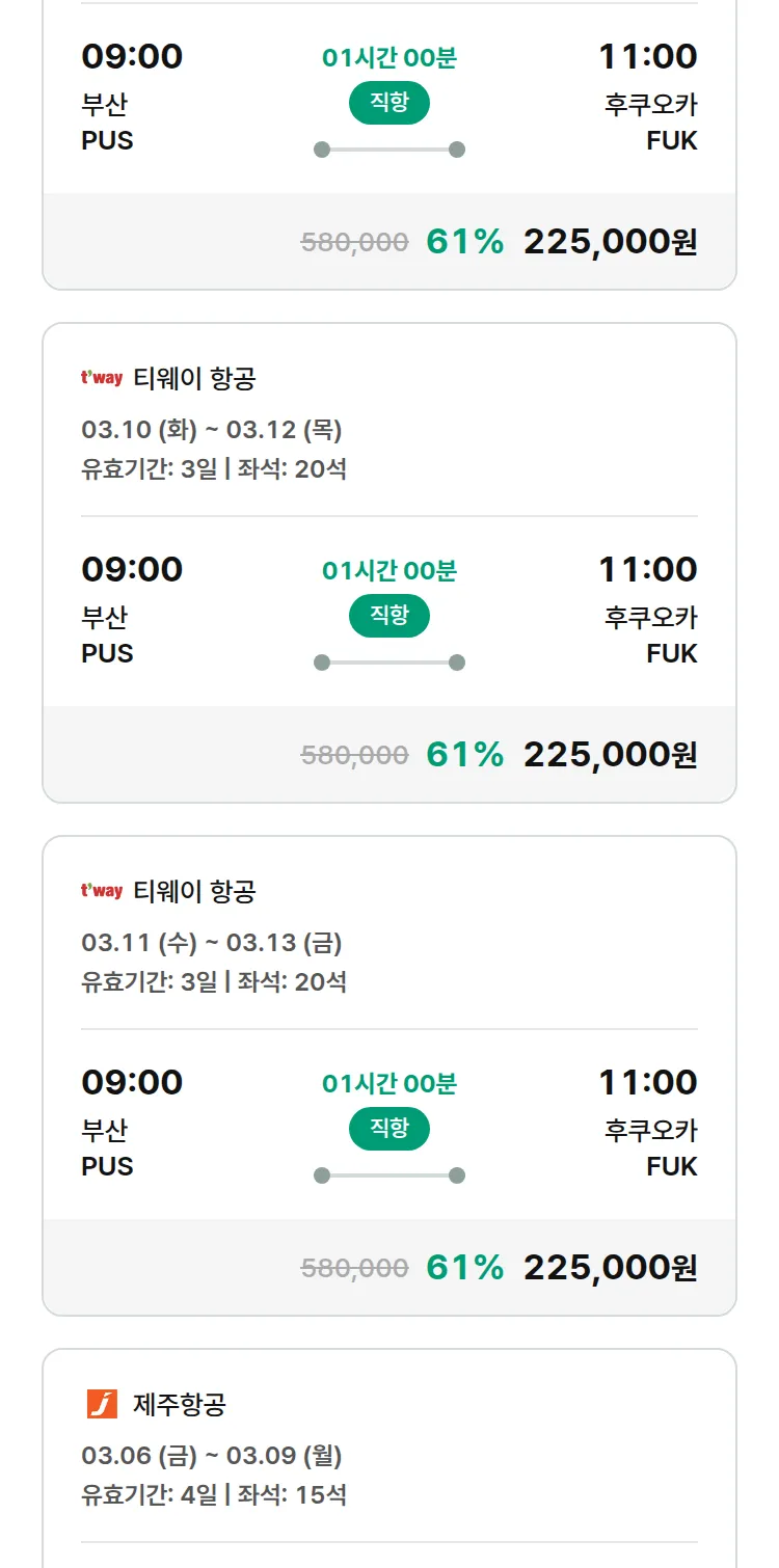 (2월8일(일)) 모두투어 일본 특가 항공권