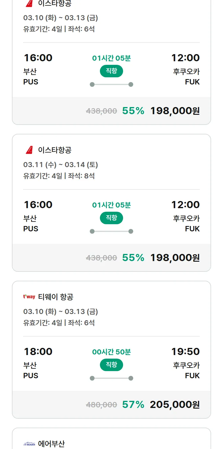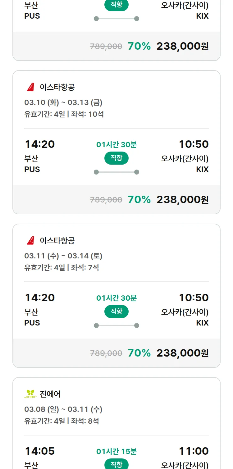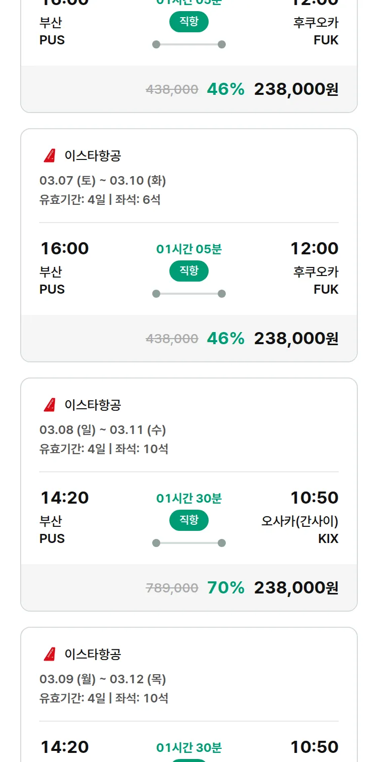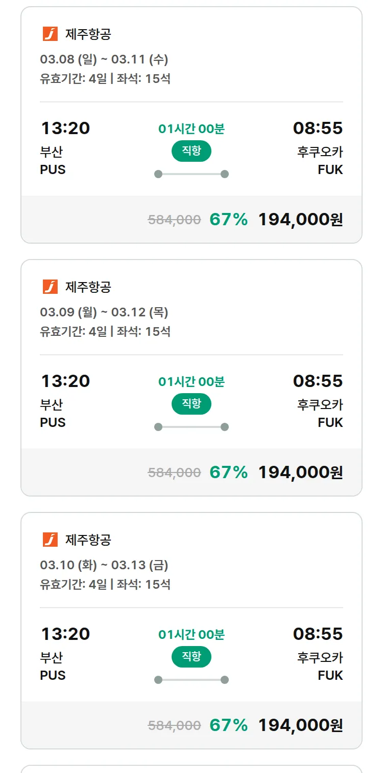 (2월8일(일)) 모두투어 일본 특가 항공권