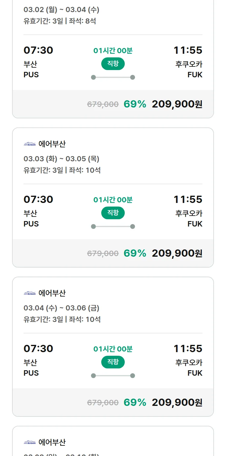 (2월8일(일)) 땡처리 99.9% 확정 패키지