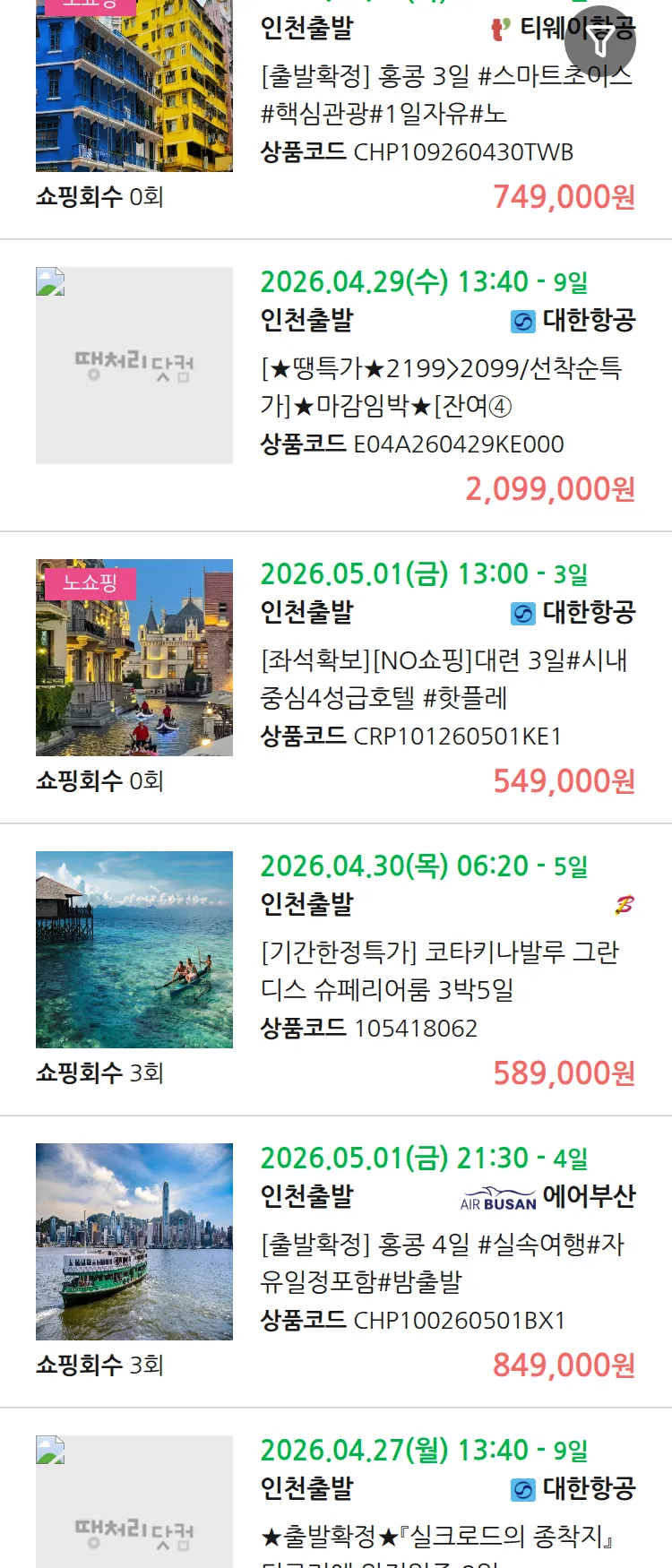 (3월 16일(월)) 땡처리 99.9% 확정 패키지