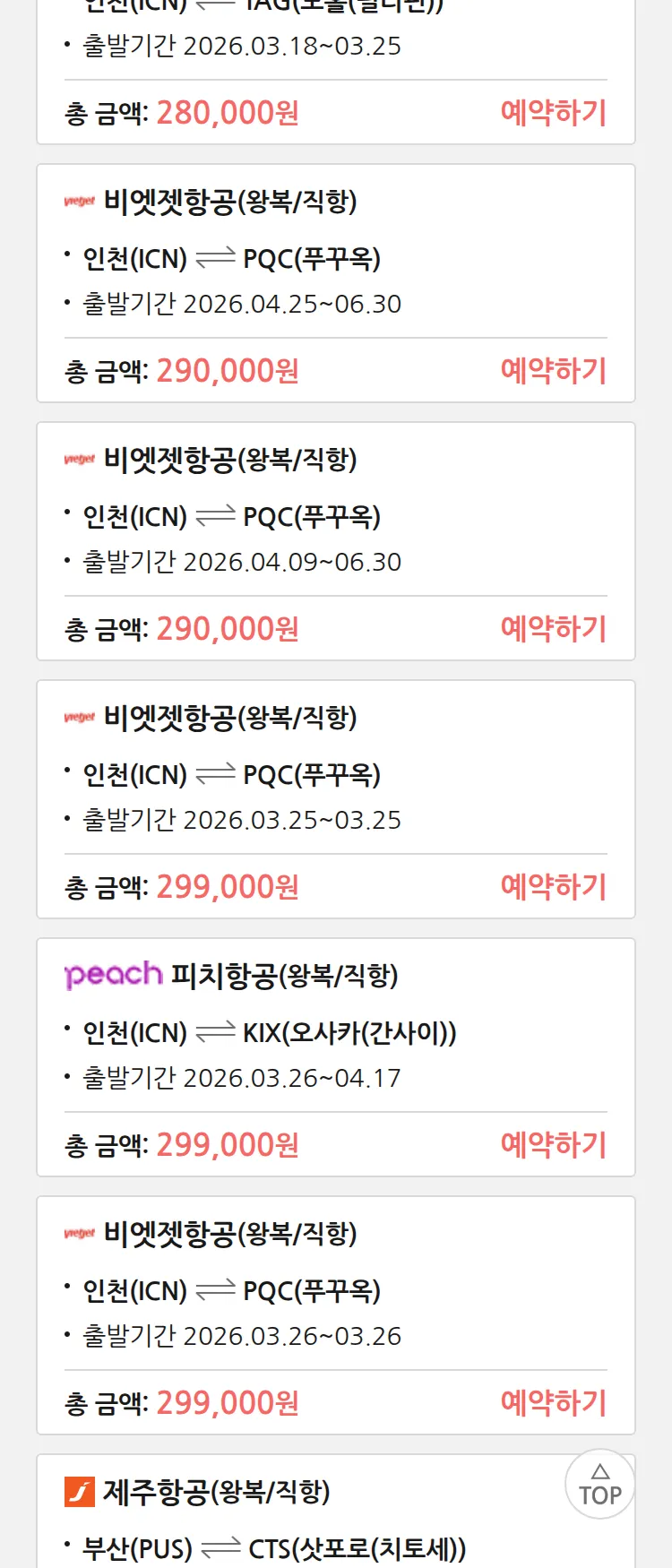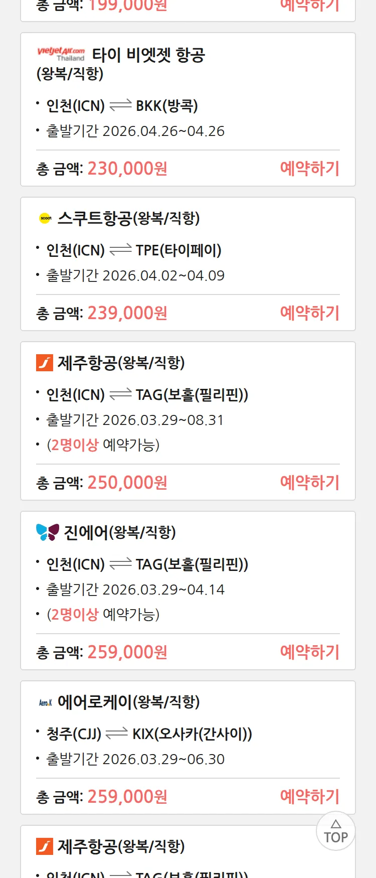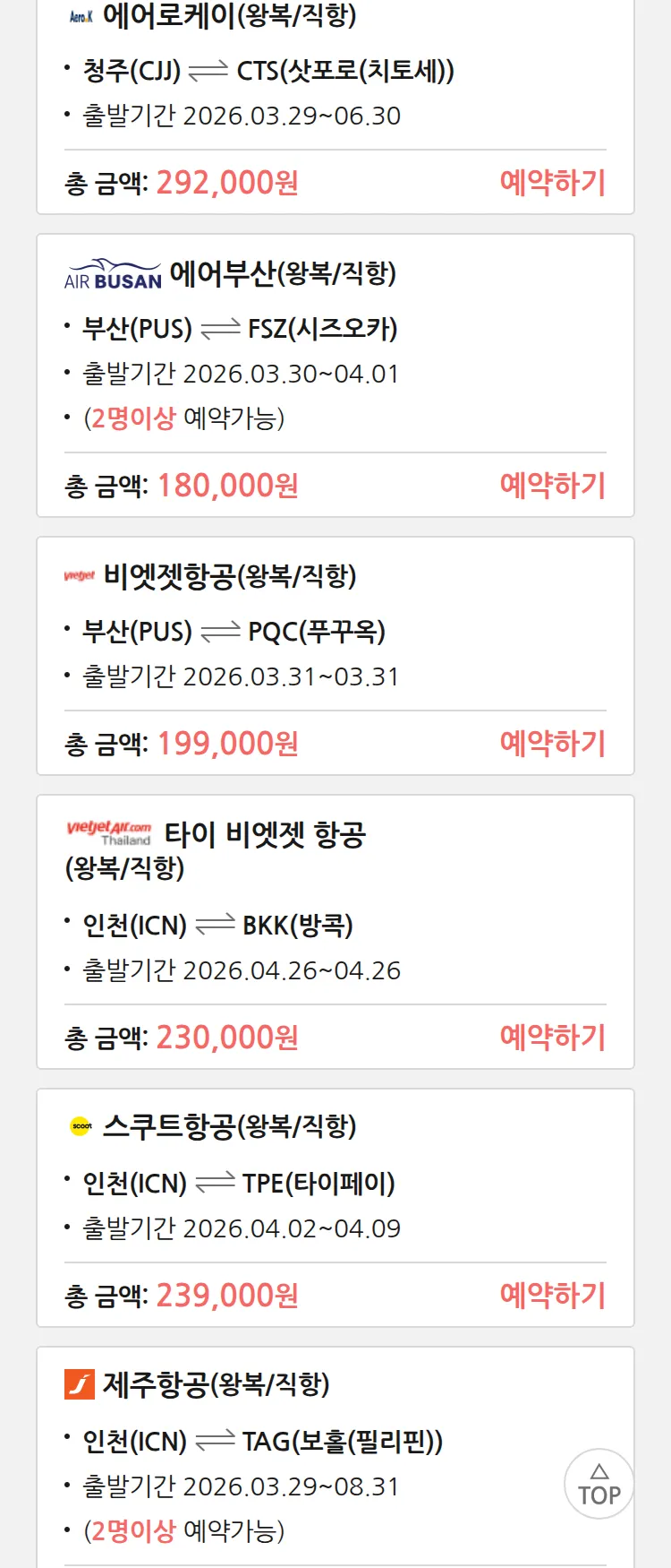 (3월 17일(화)) 땡처리 특가 항공권