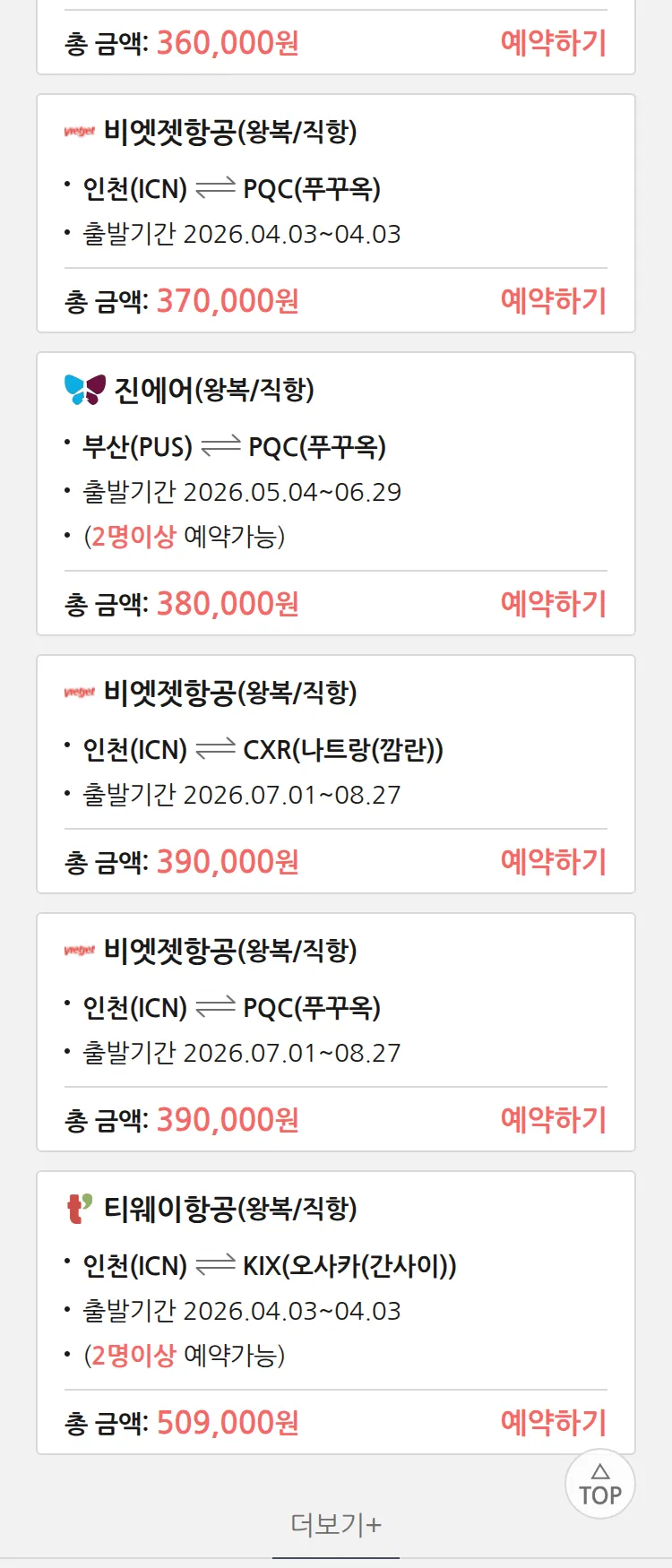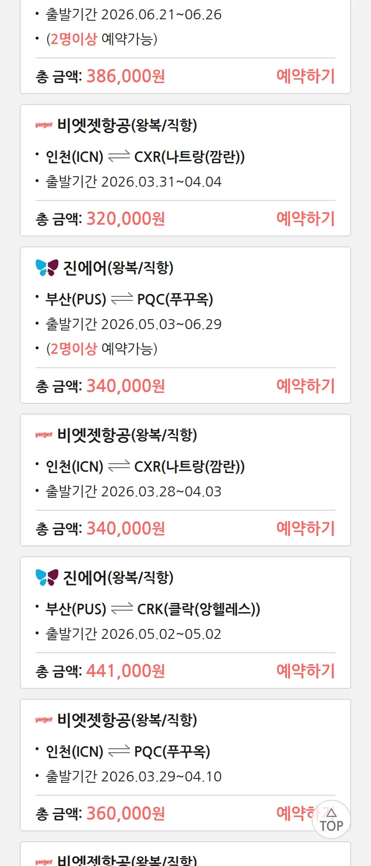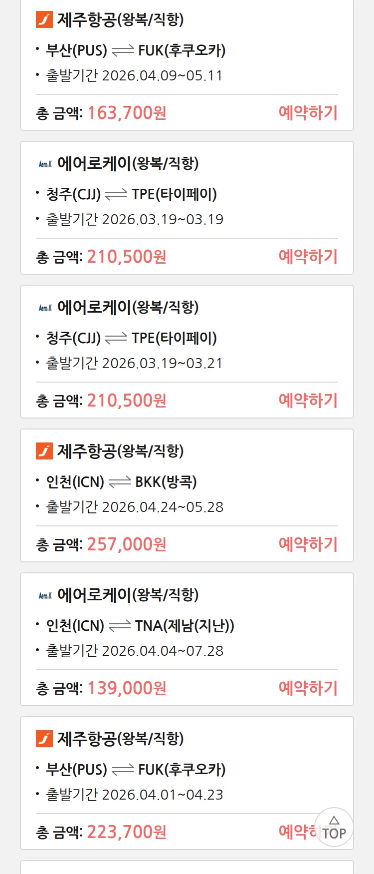 (3월 17일(화)) 땡처리 특가 항공권