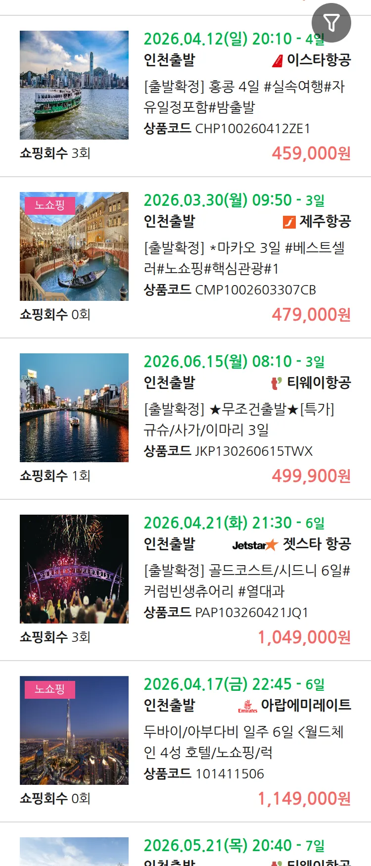 (3월 16일(월)) 땡처리 99.9% 확정 패키지