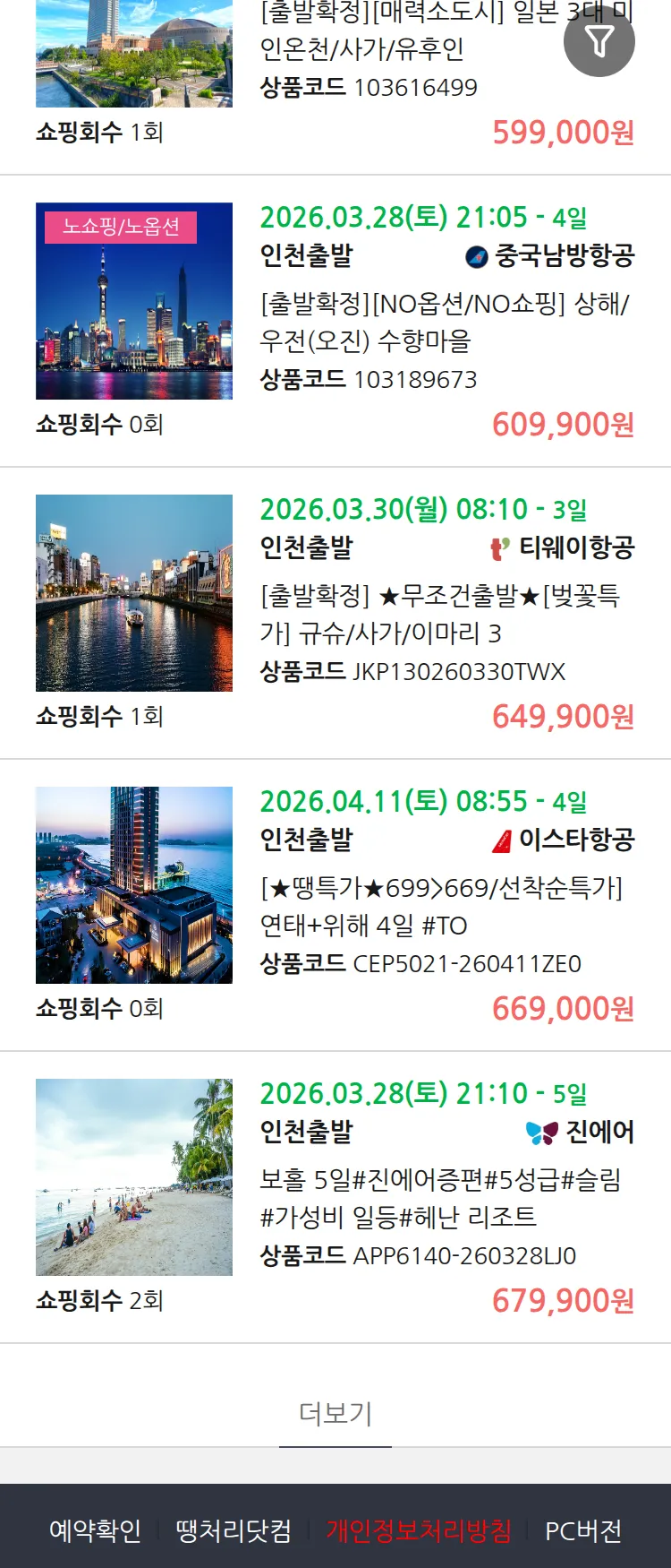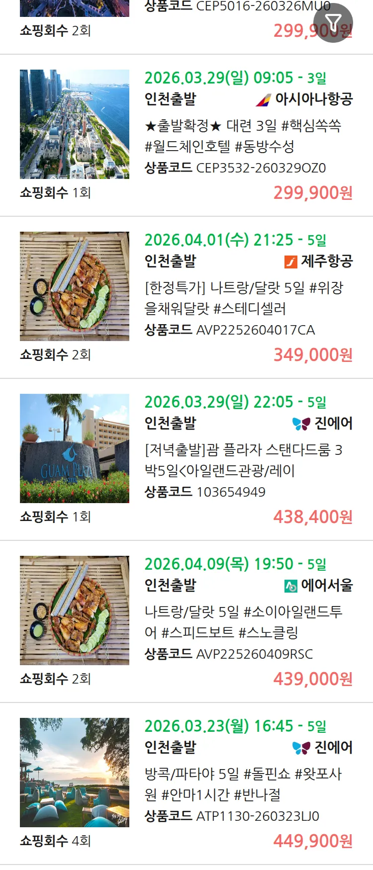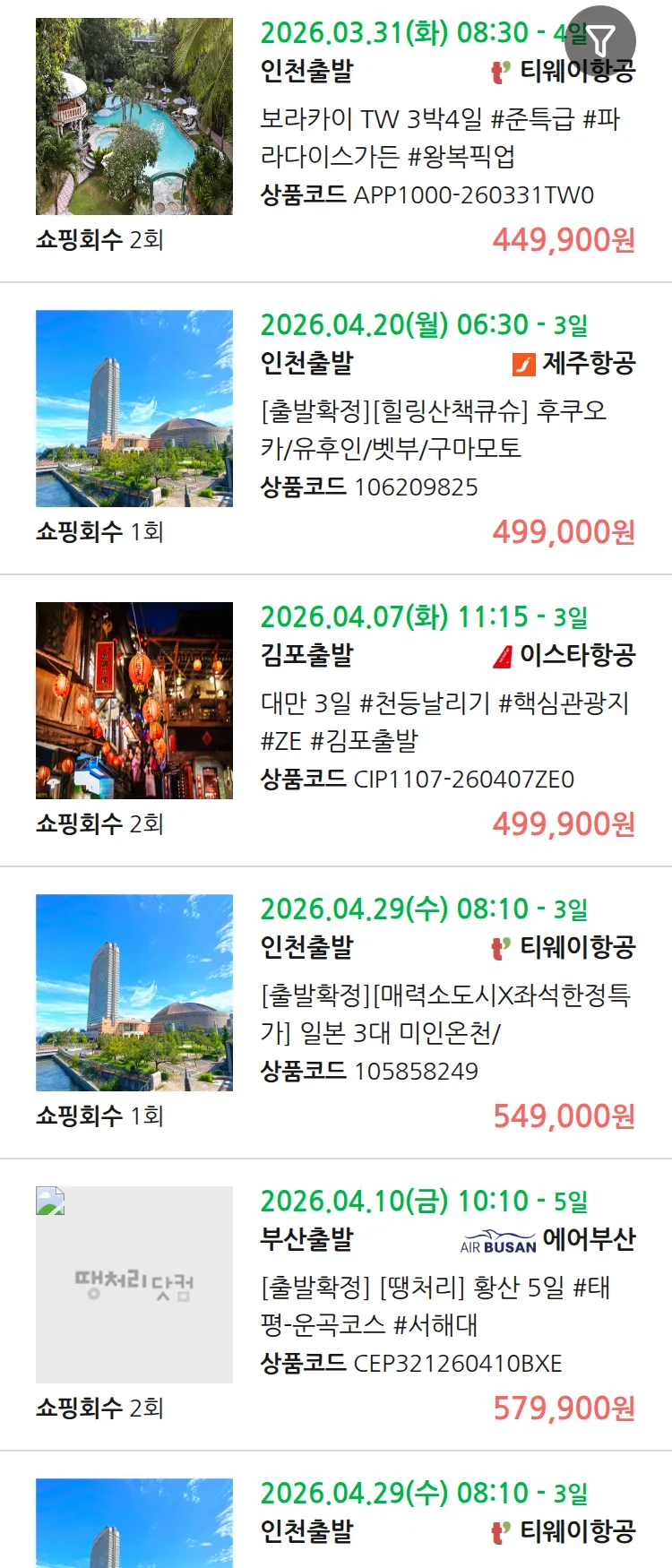 (3월 18일(수)) 땡처리 99.9% 확정 패키지