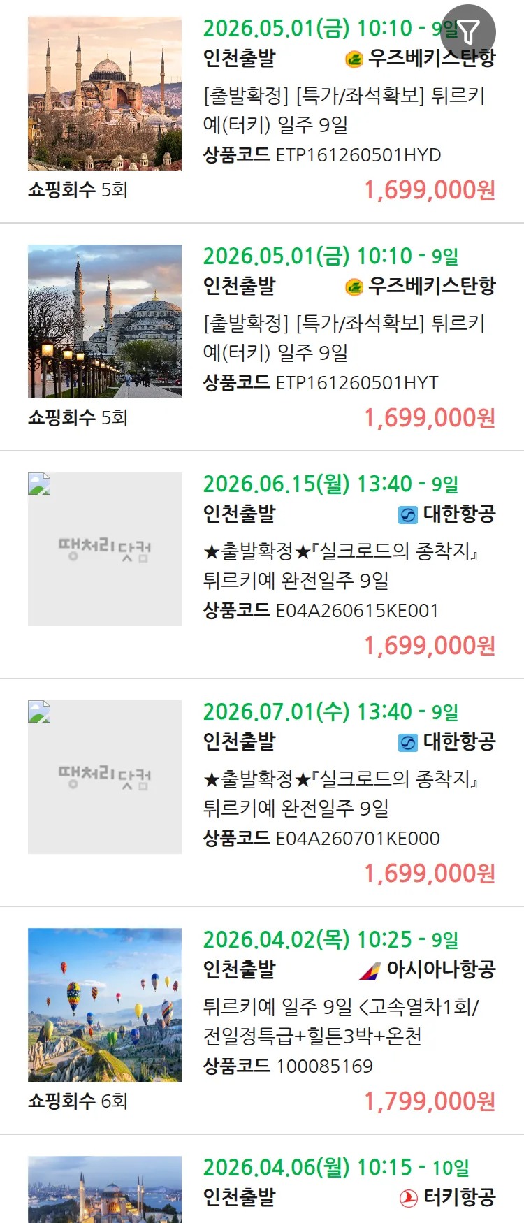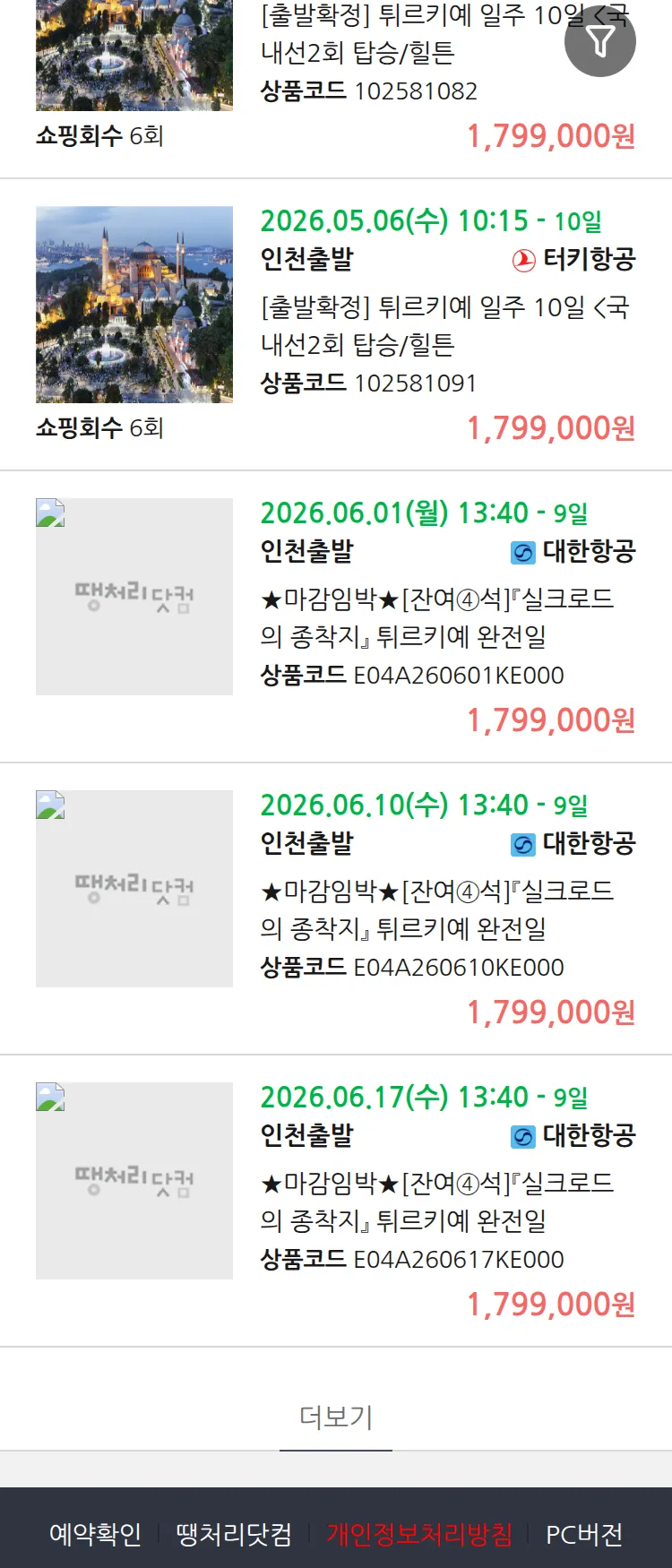 (3월 18일(수)) 땡처리 99.9% 확정 패키지