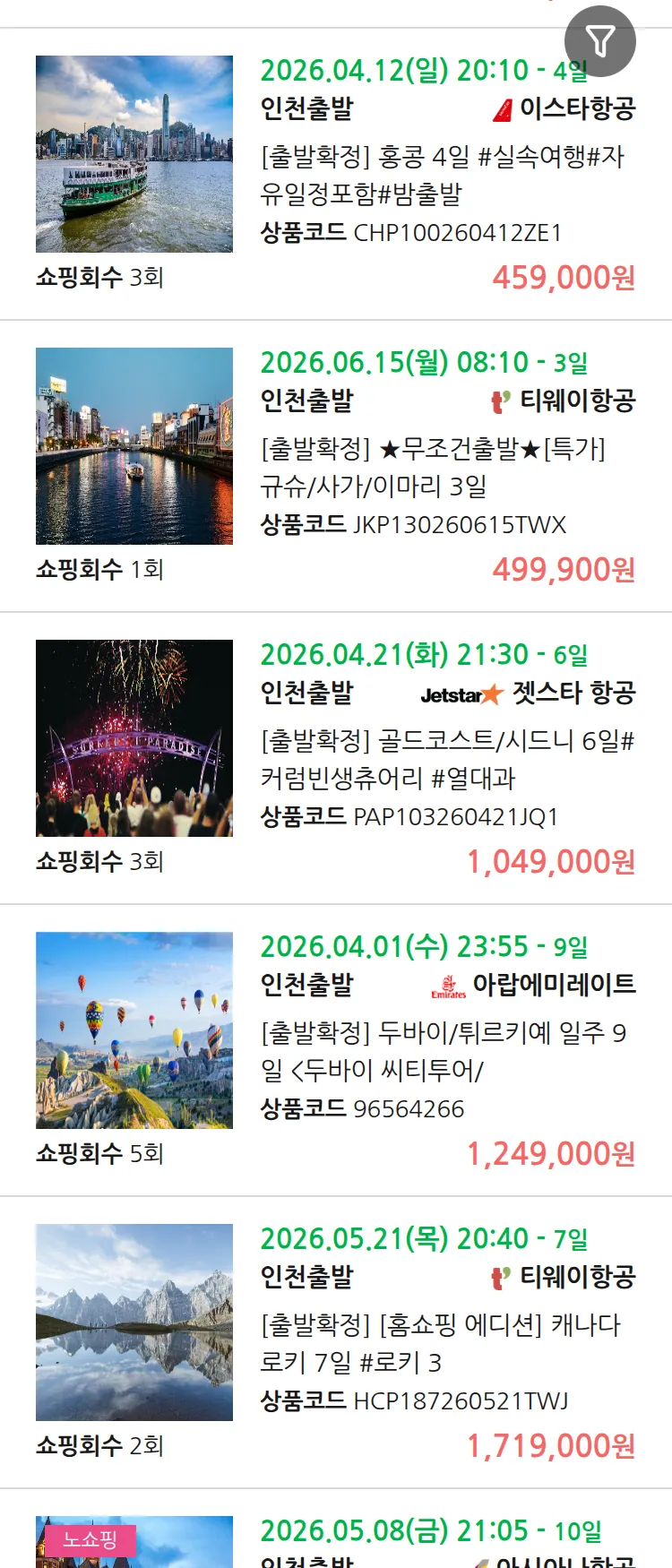 (3월 18일(수)) 땡처리 99.9% 확정 패키지