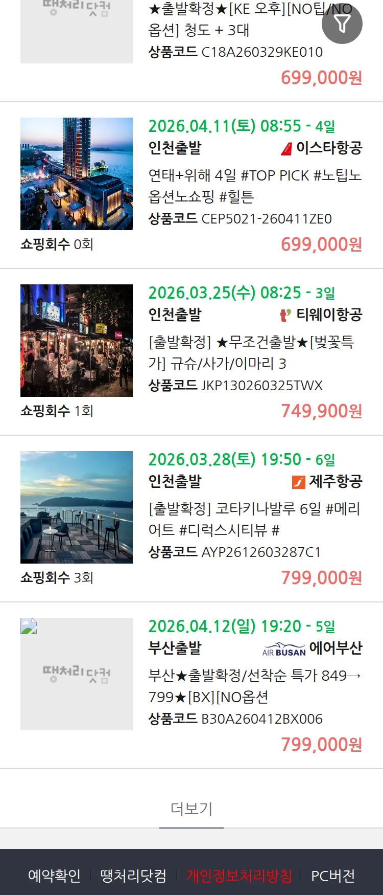 (3월 18일(수)) 땡처리 99.9% 확정 패키지