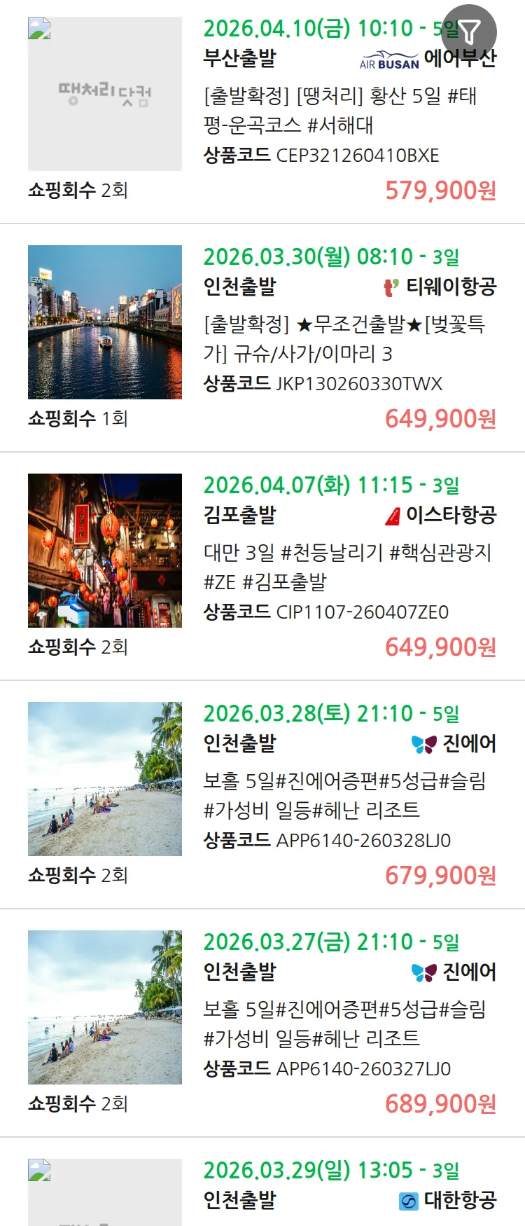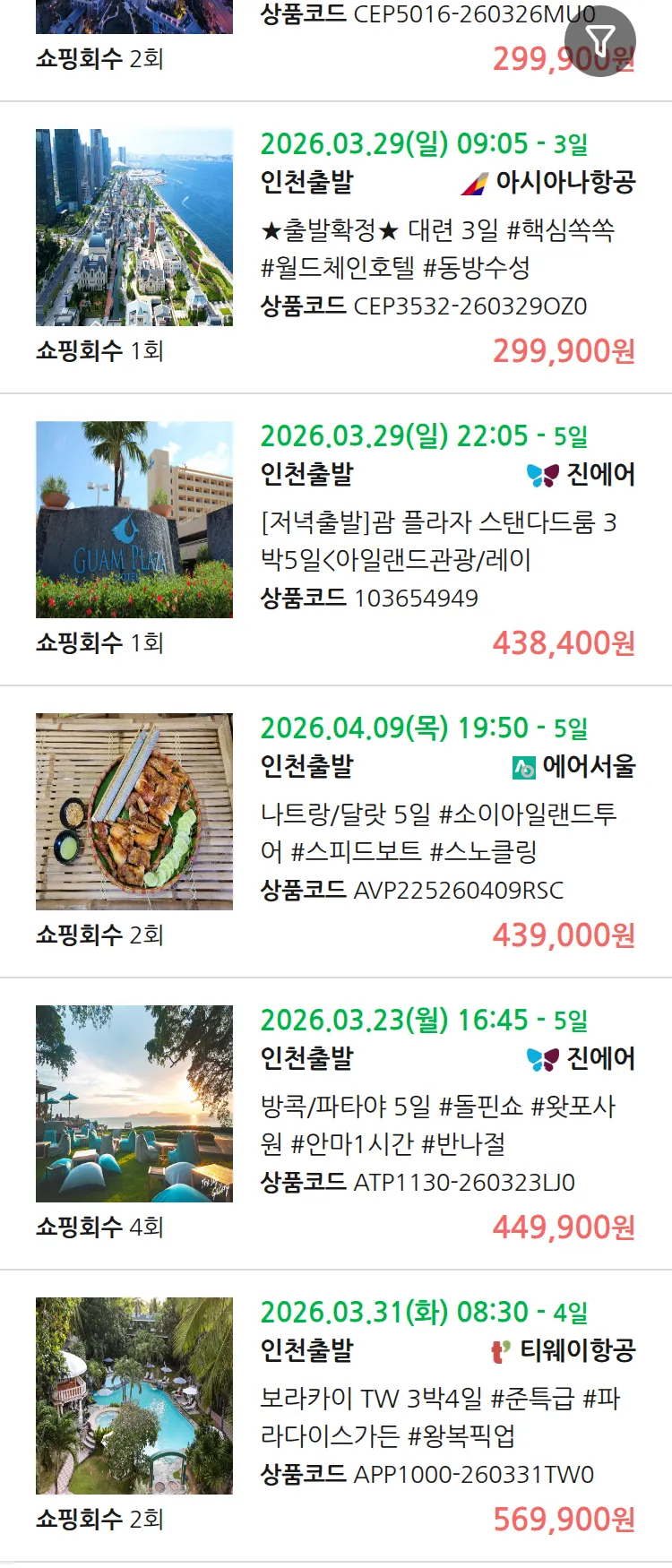(3월 17일(화)) 땡처리 99.9% 확정 패키지