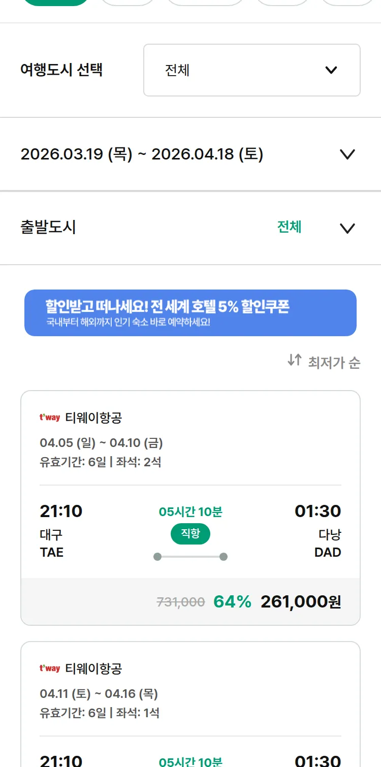 (3월 19일(목)) 땡처리 마감임박 패키지