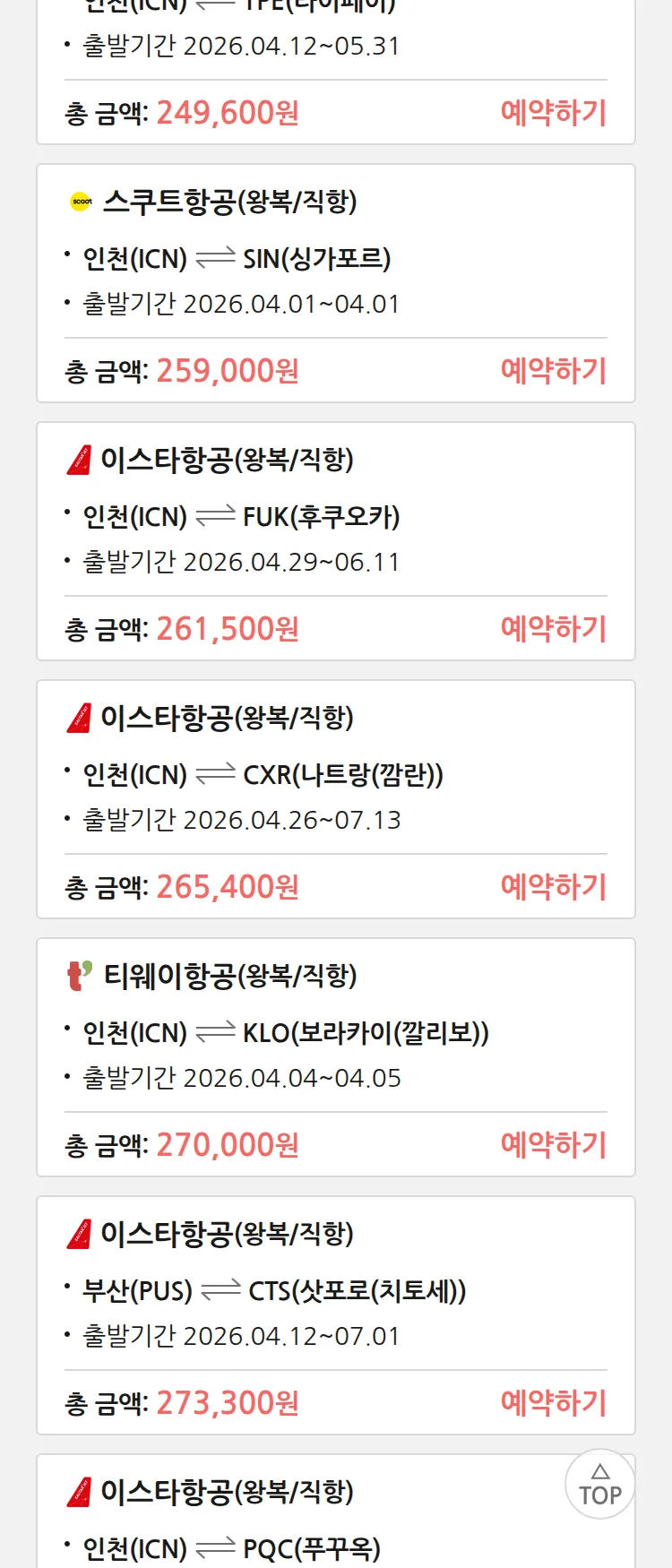 (3월 18일(수)) 땡처리 99.9% 확정 패키지