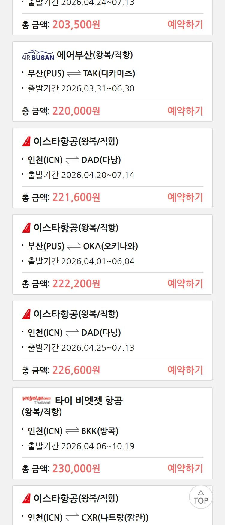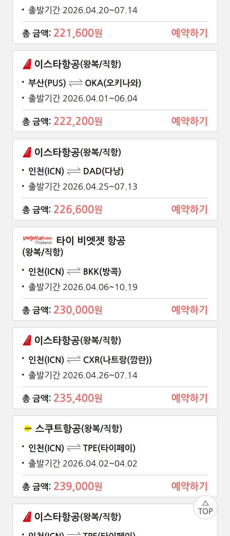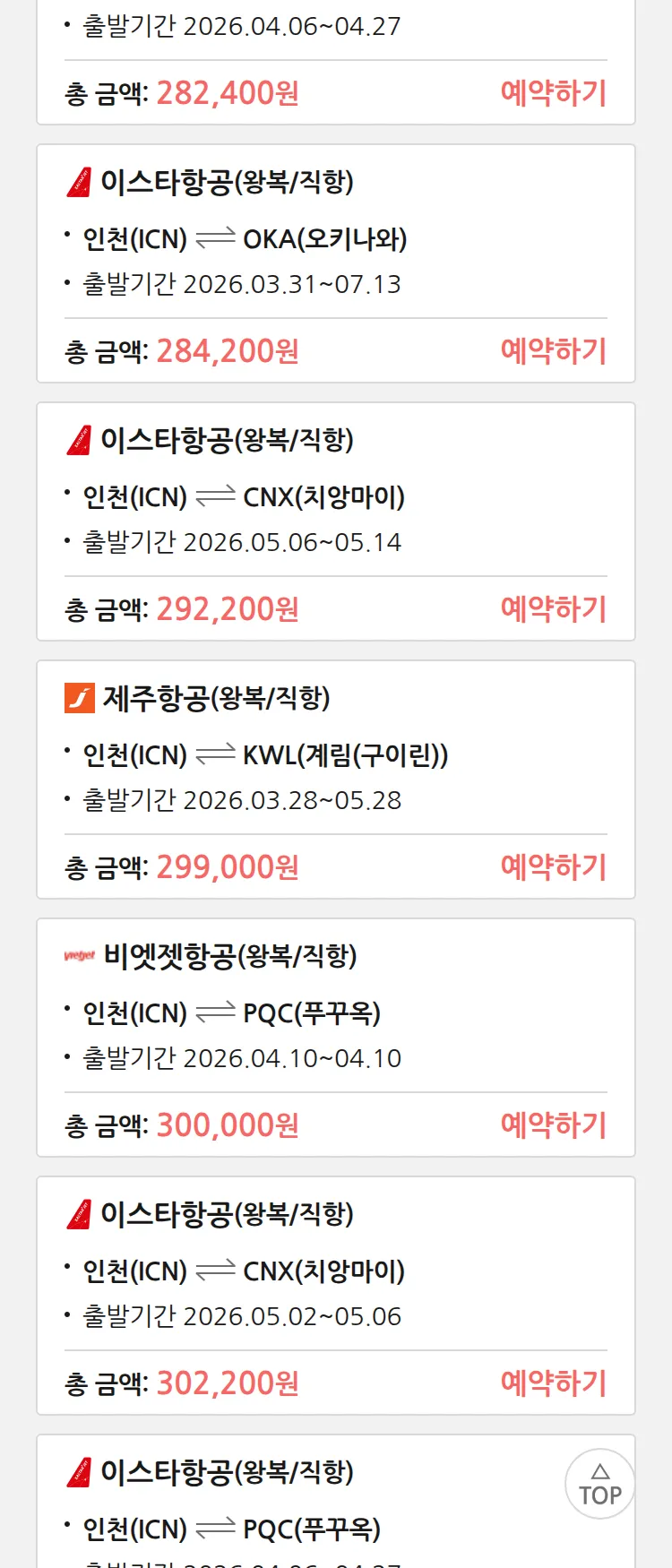 (3월 21일(토)) 땡처리 특가 항공권
