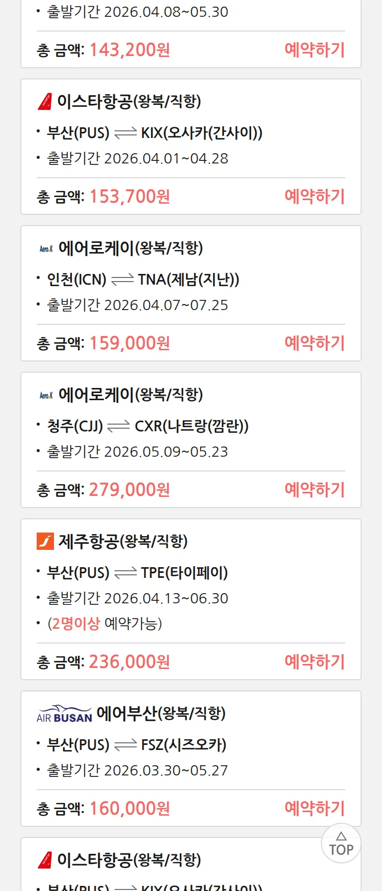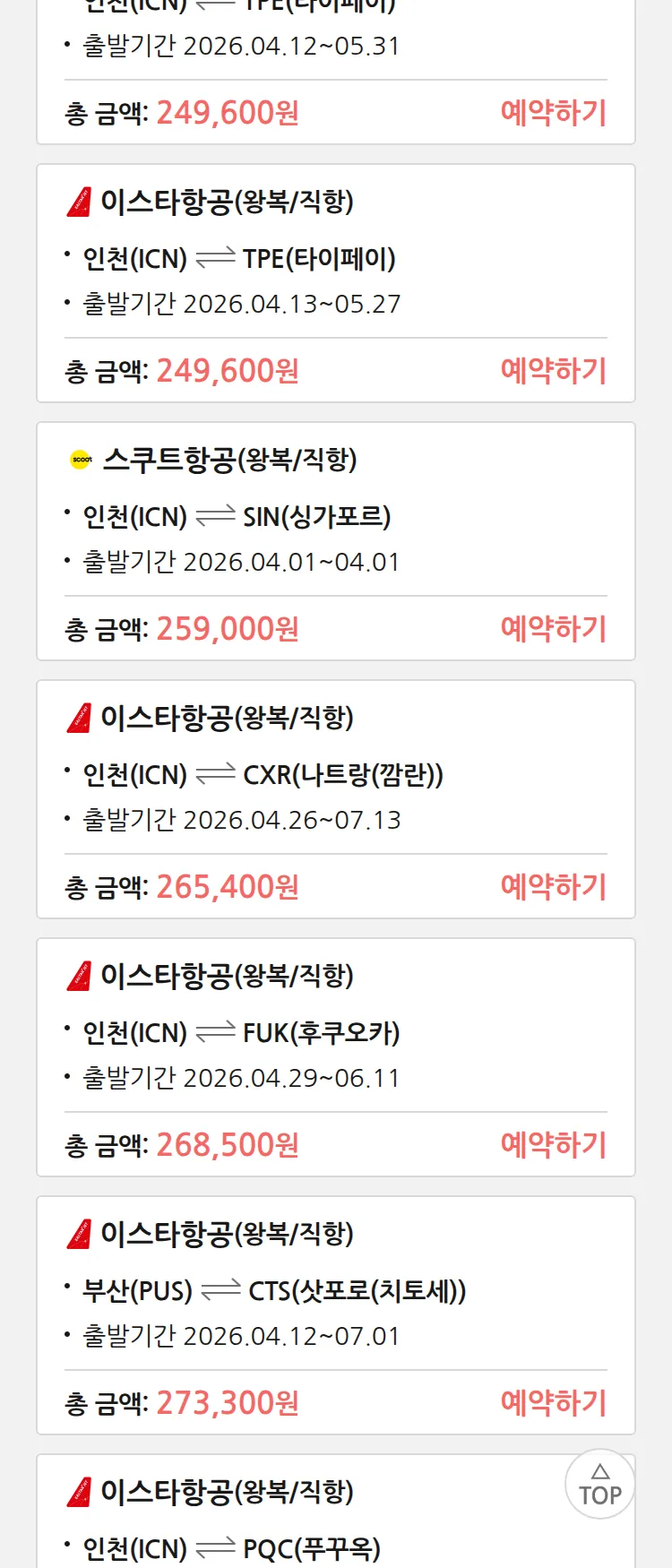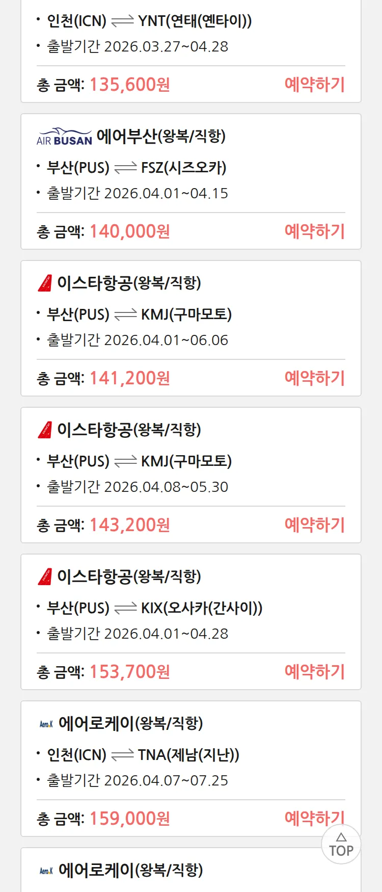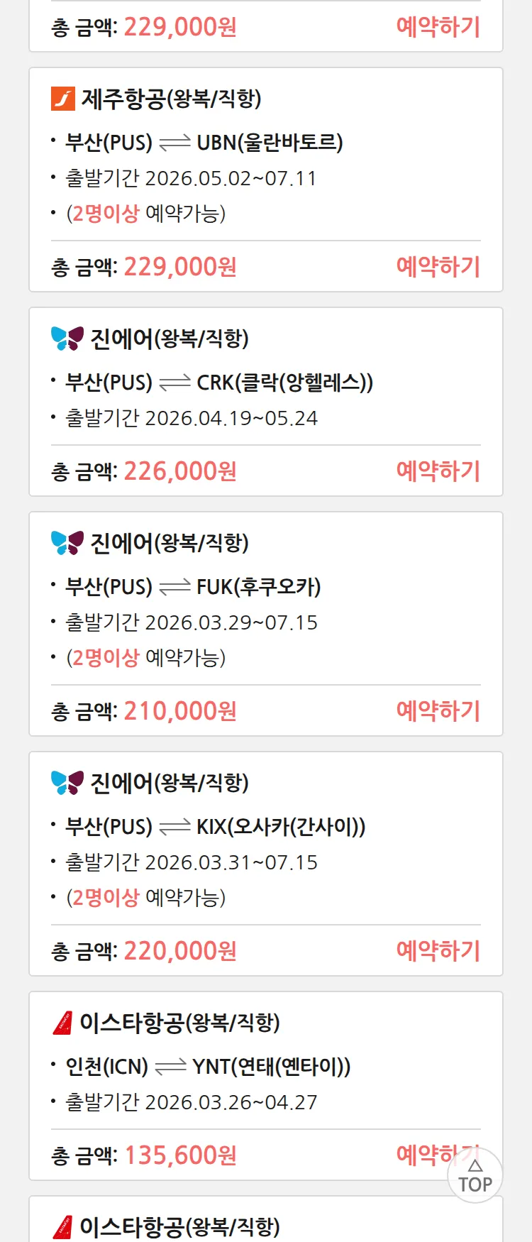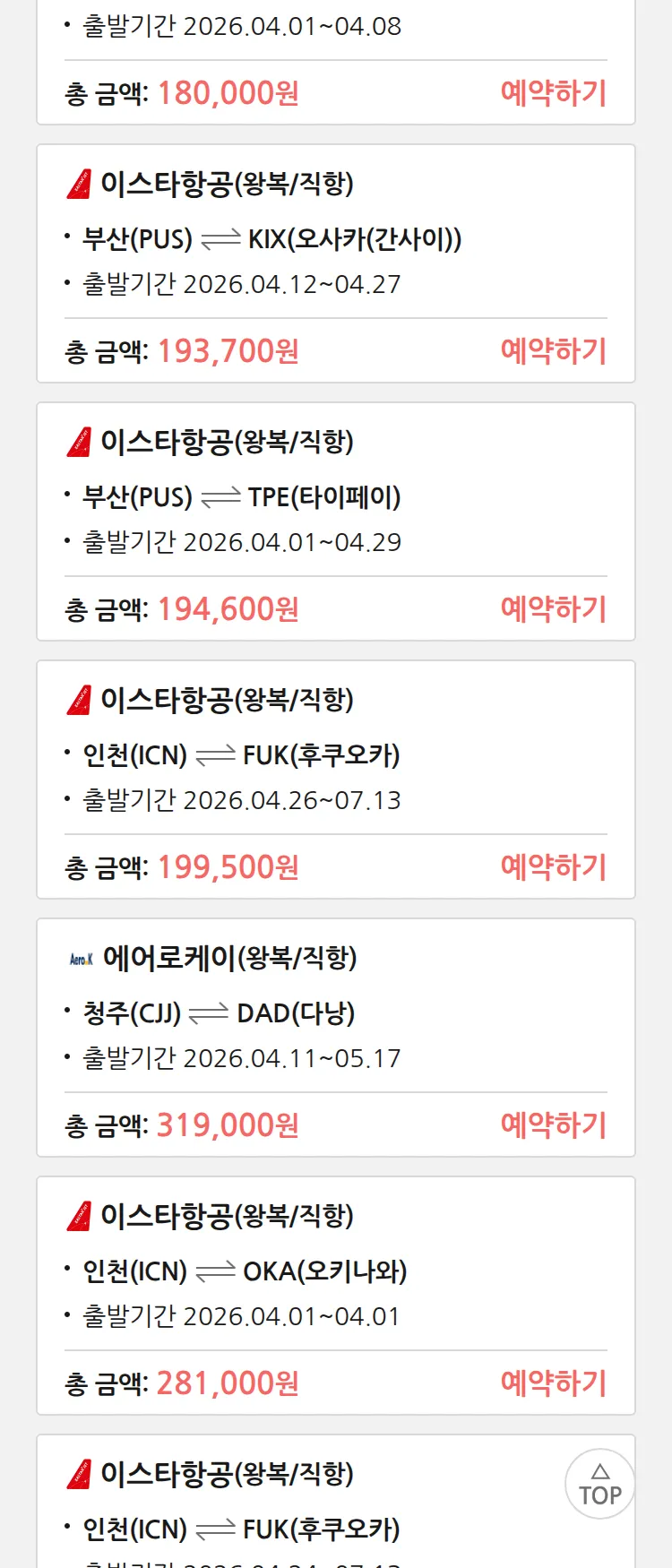 (3월 19일(목)) 땡처리 특가 항공권