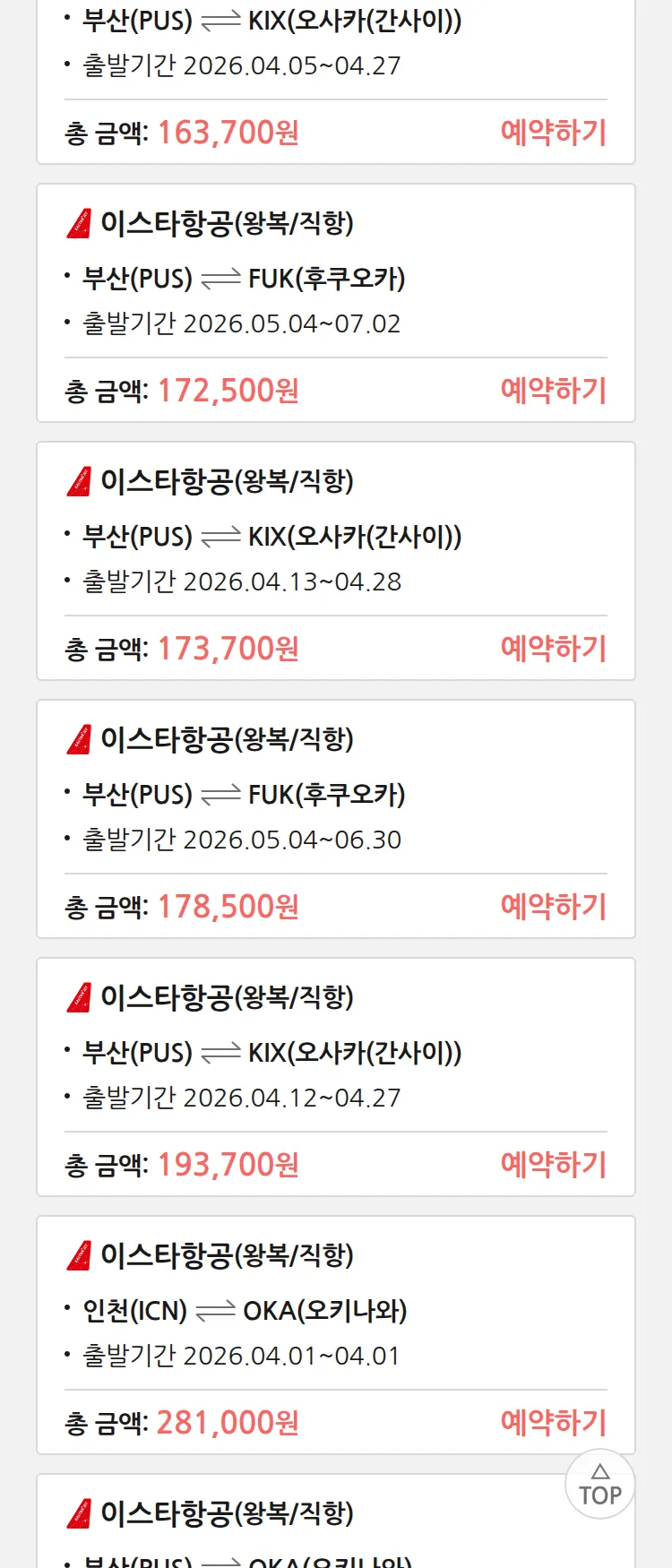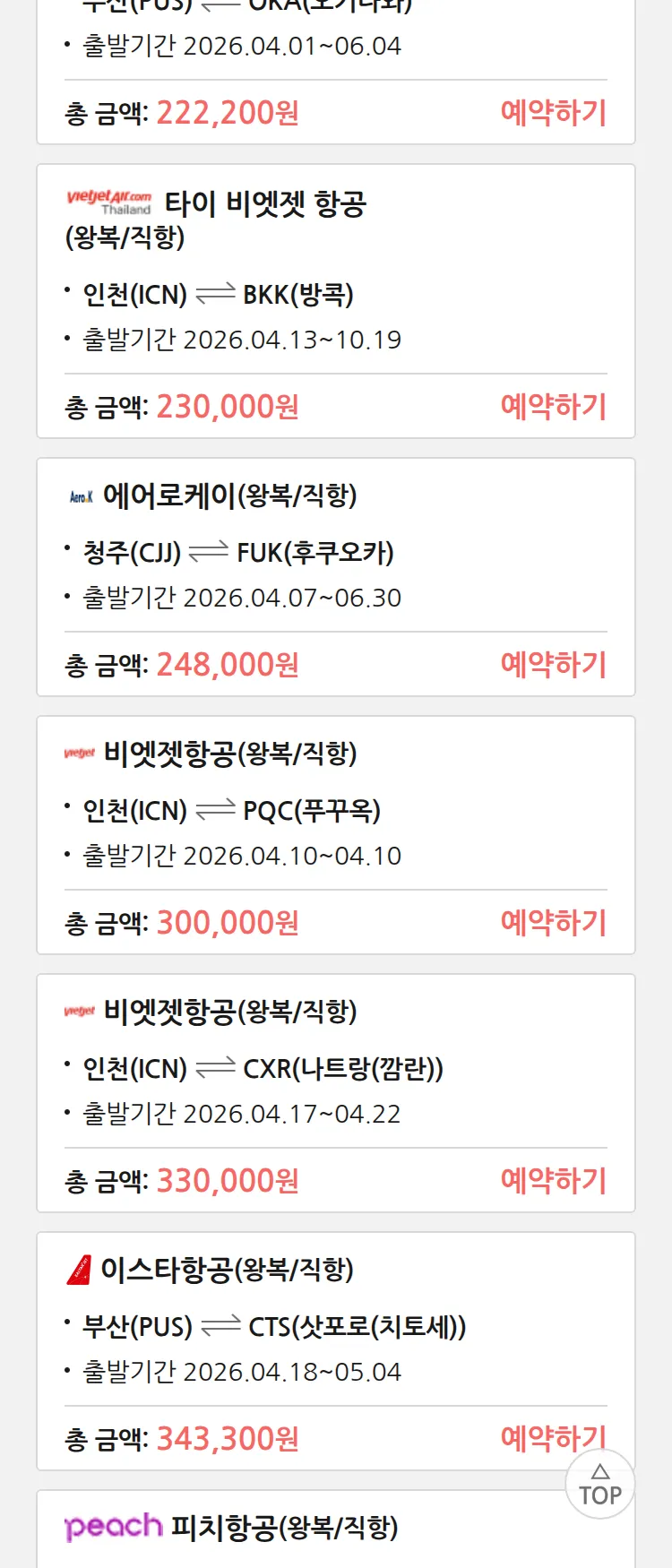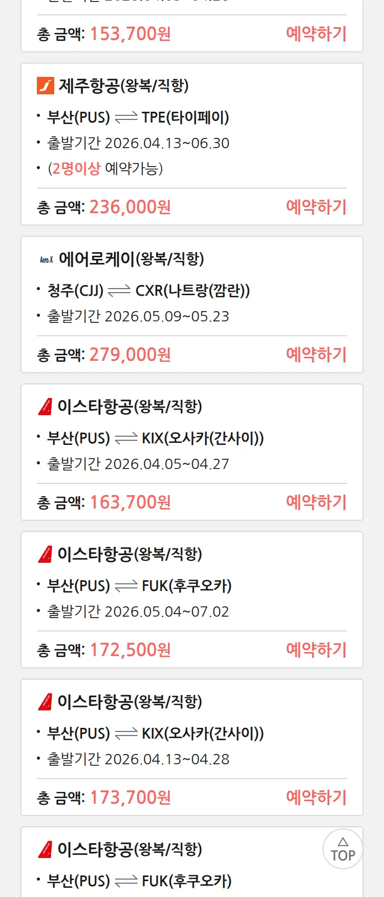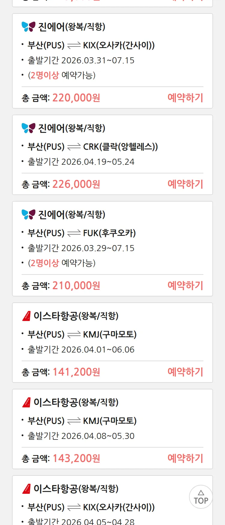 (3월 24일(화)) 땡처리 특가 항공권