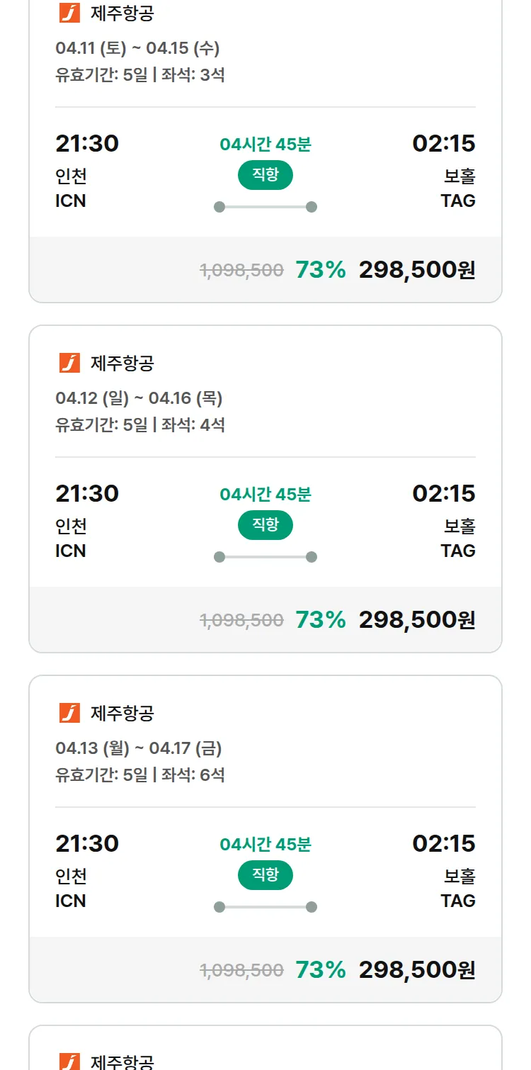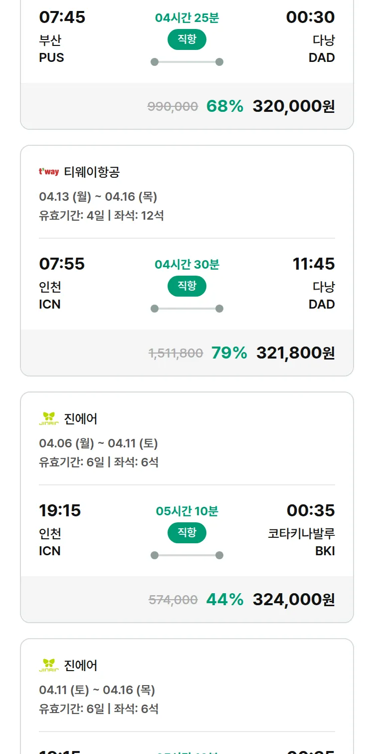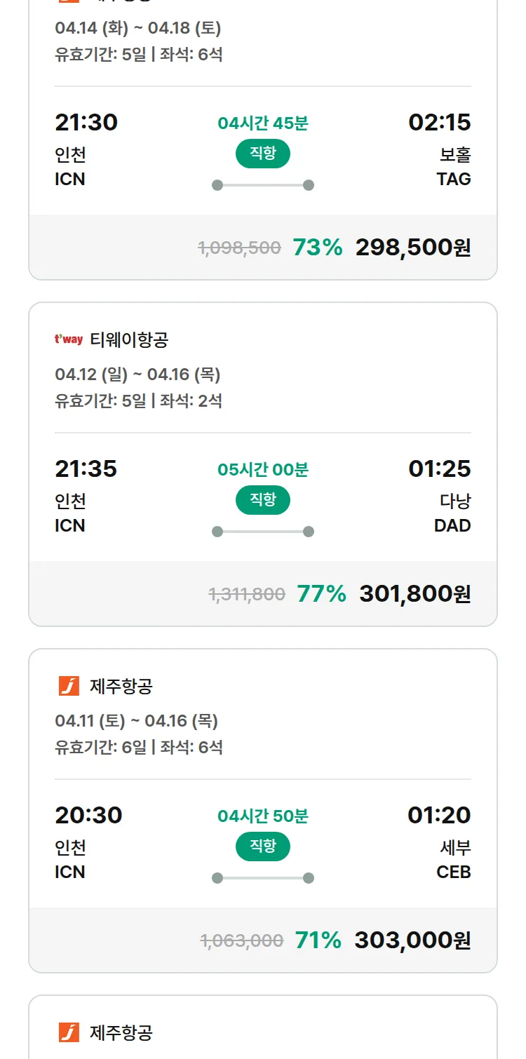 (3월 21일(토)) 땡처리 특가 항공권