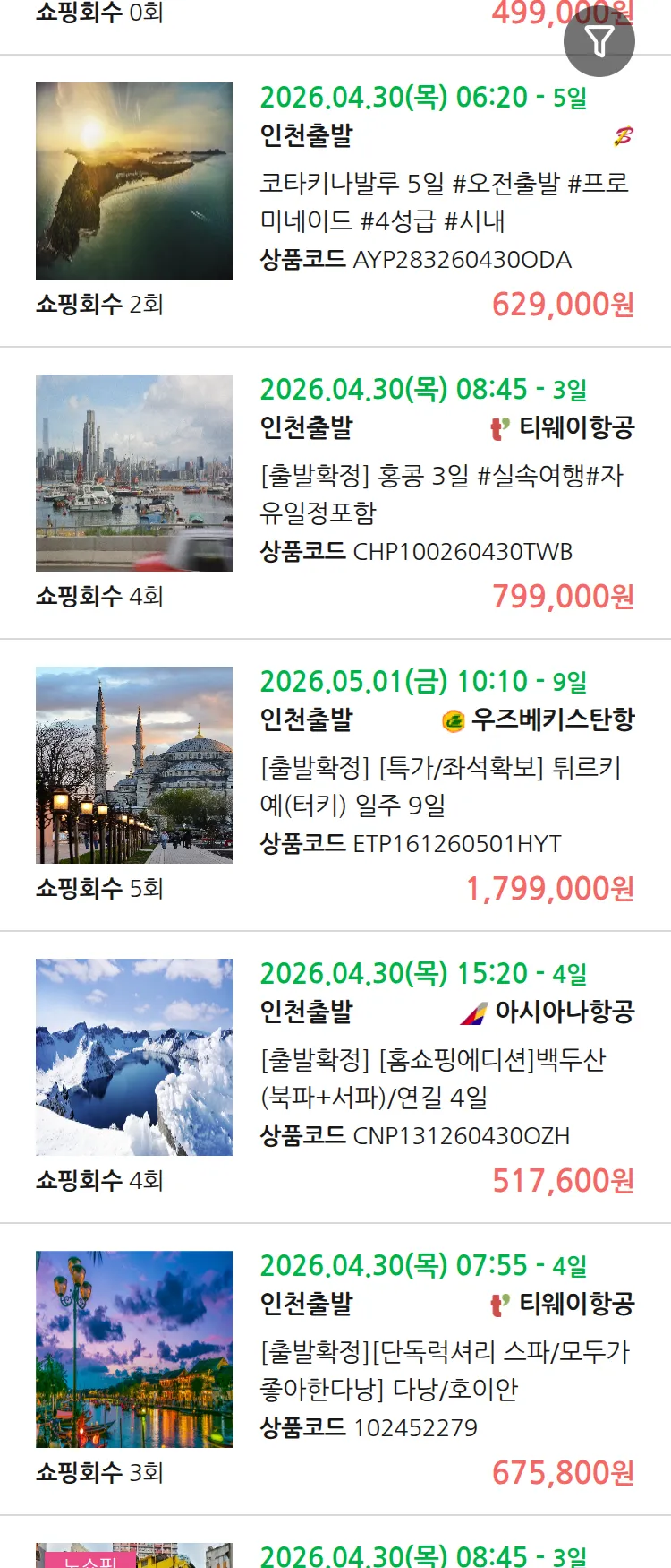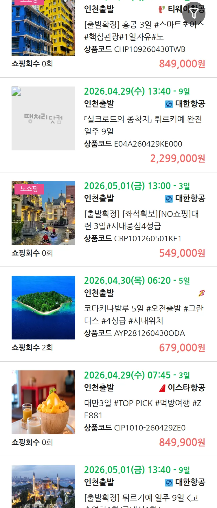 (3월 24일(화)) 땡처리 99.9% 확정 패키지