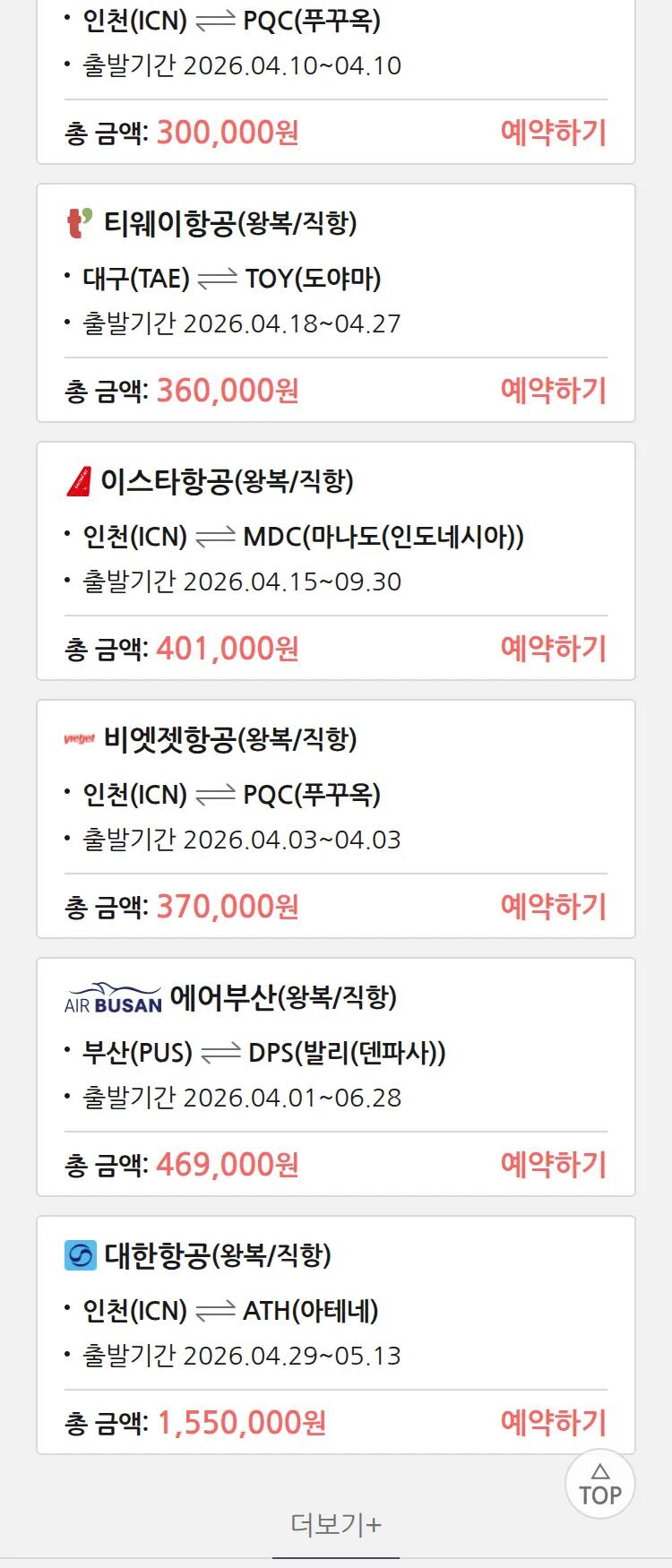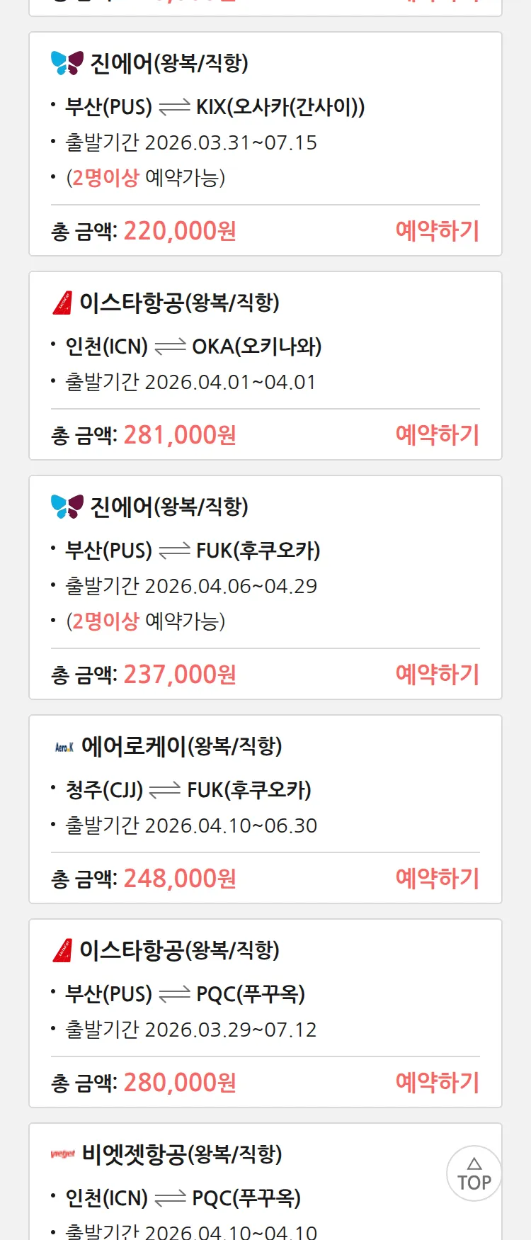 (3월 24일(화)) 땡처리 특가 항공권