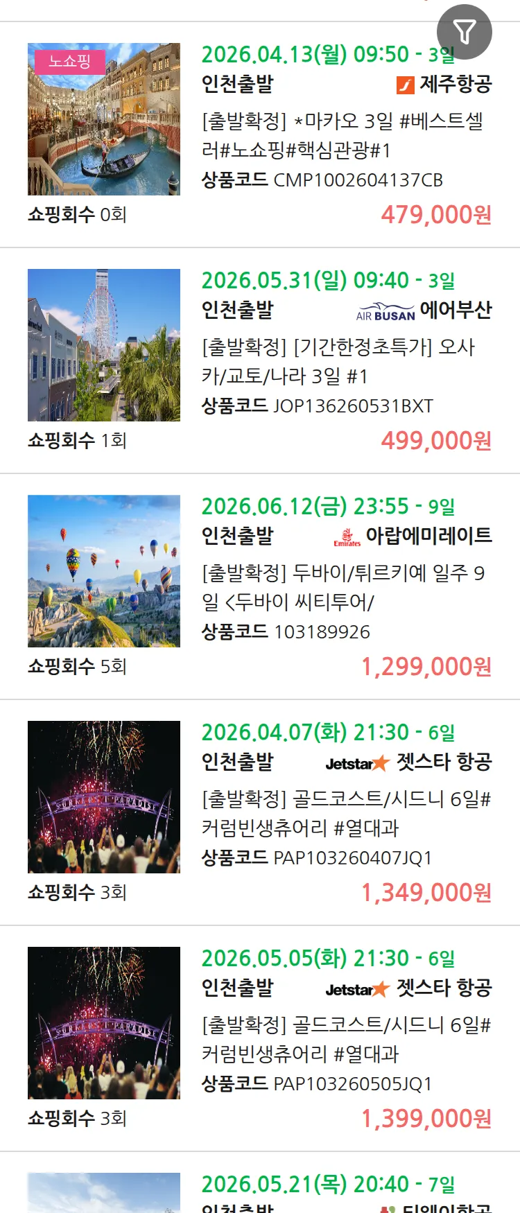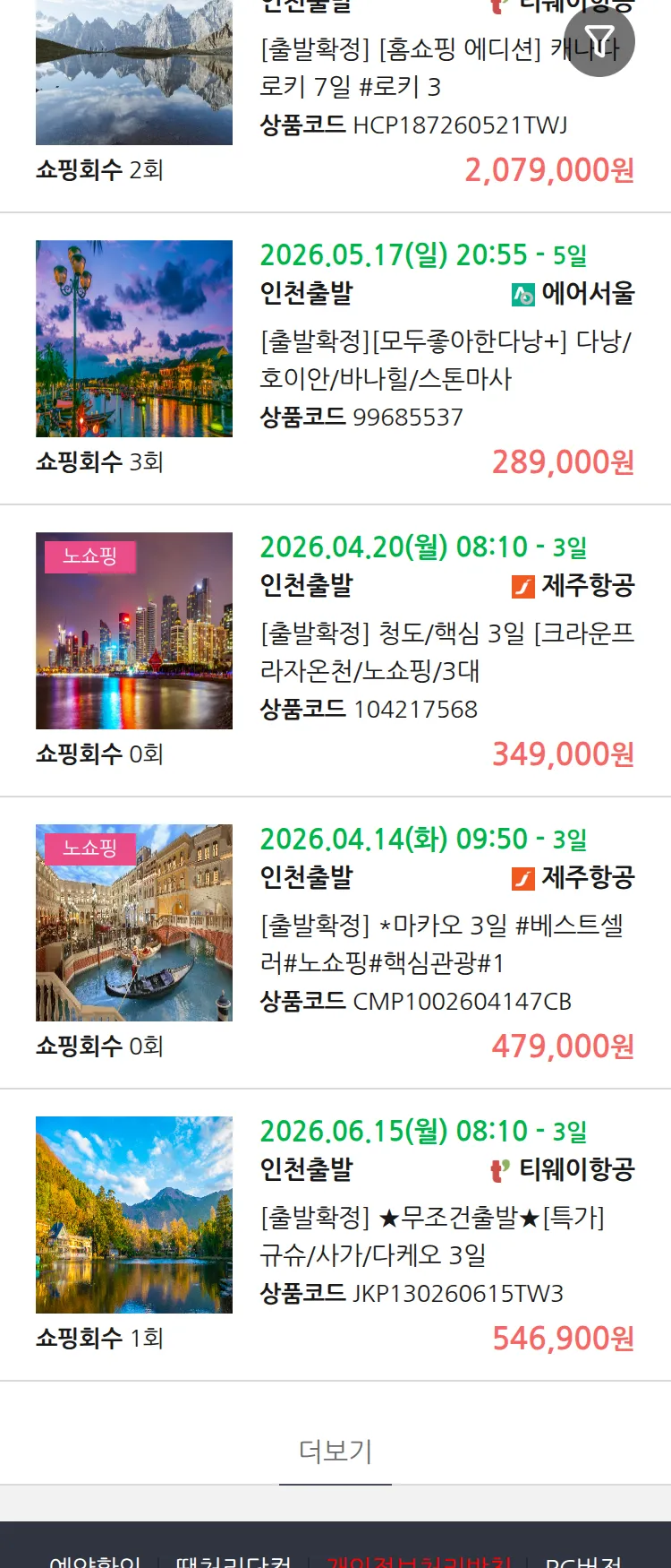 (3월 25일(수)) 땡처리 99.9% 확정 패키지