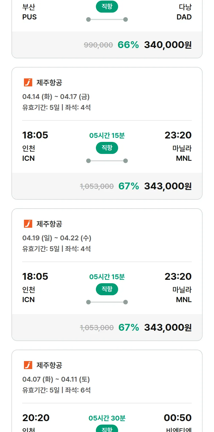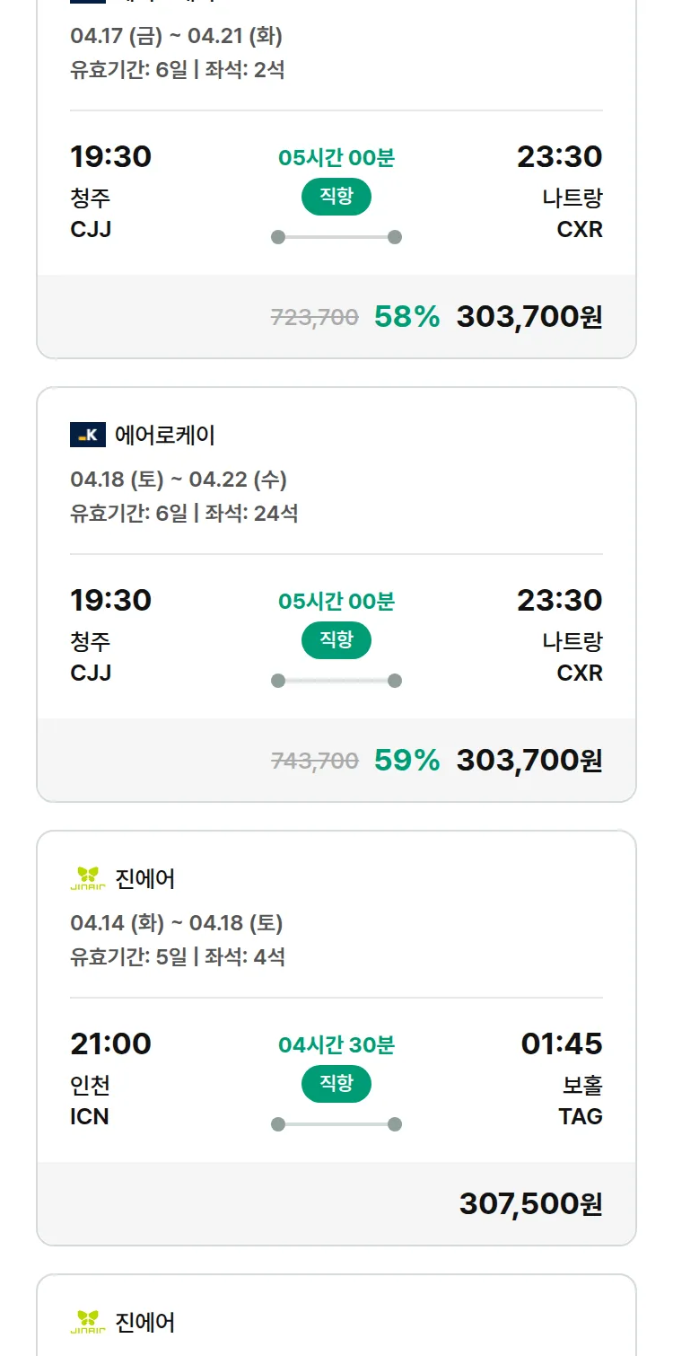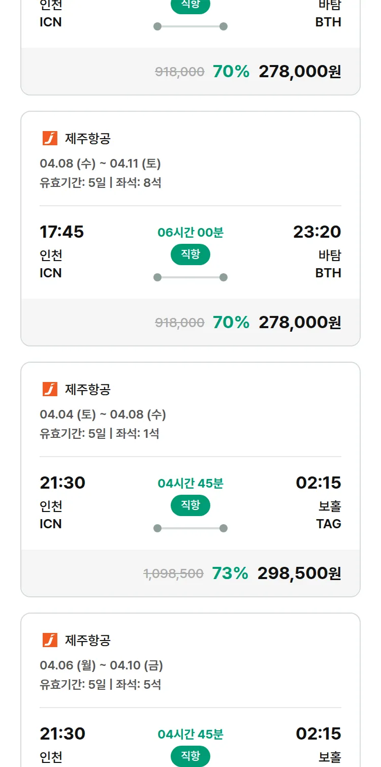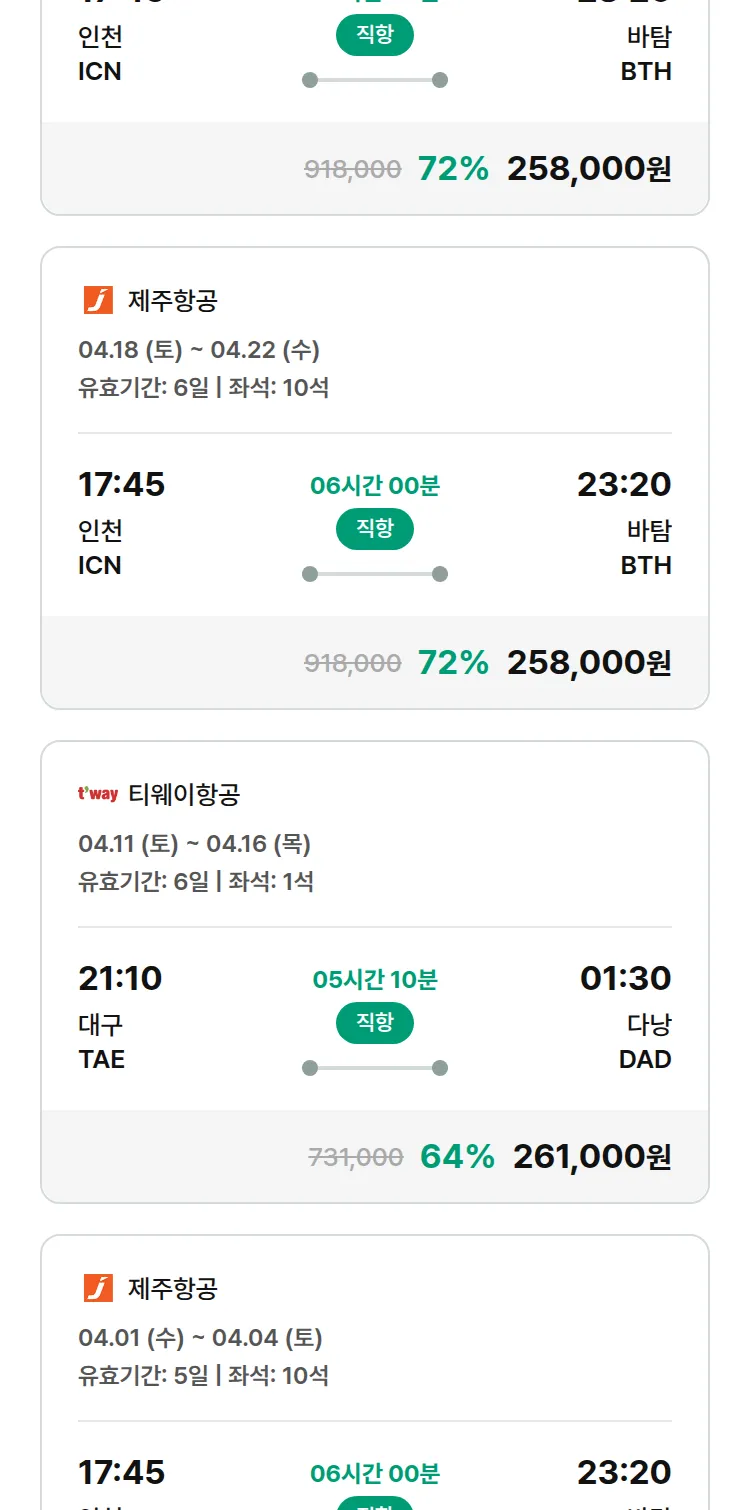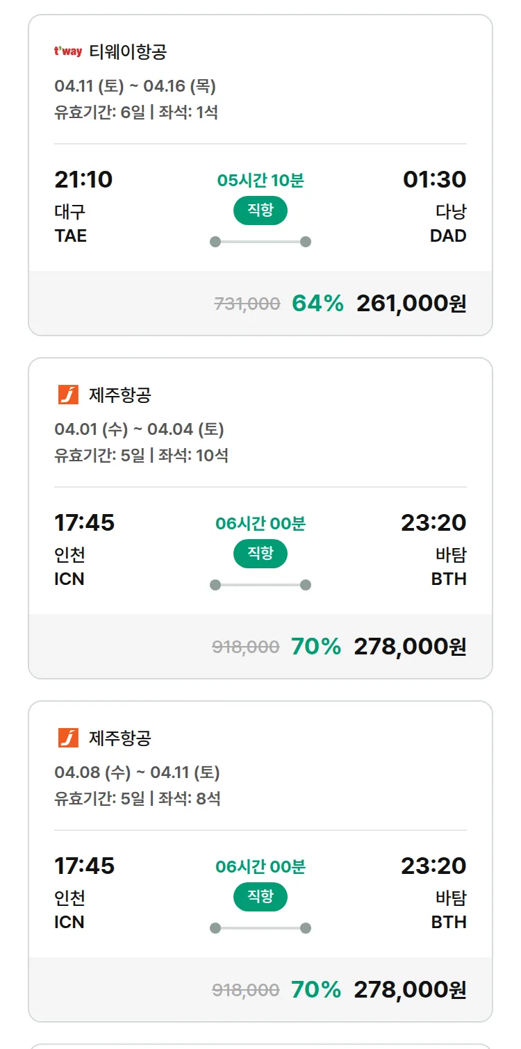 (3월 24일(화)) 땡처리 특가 항공권