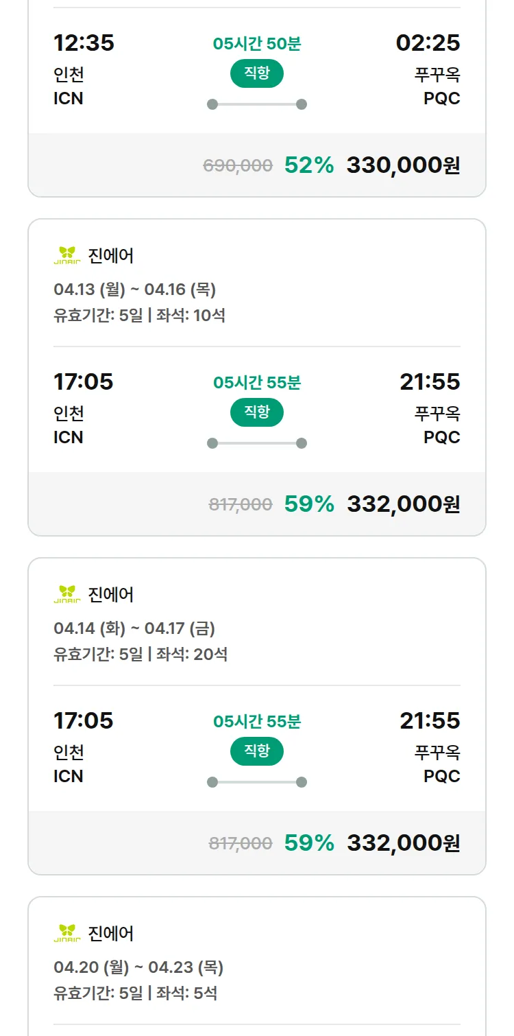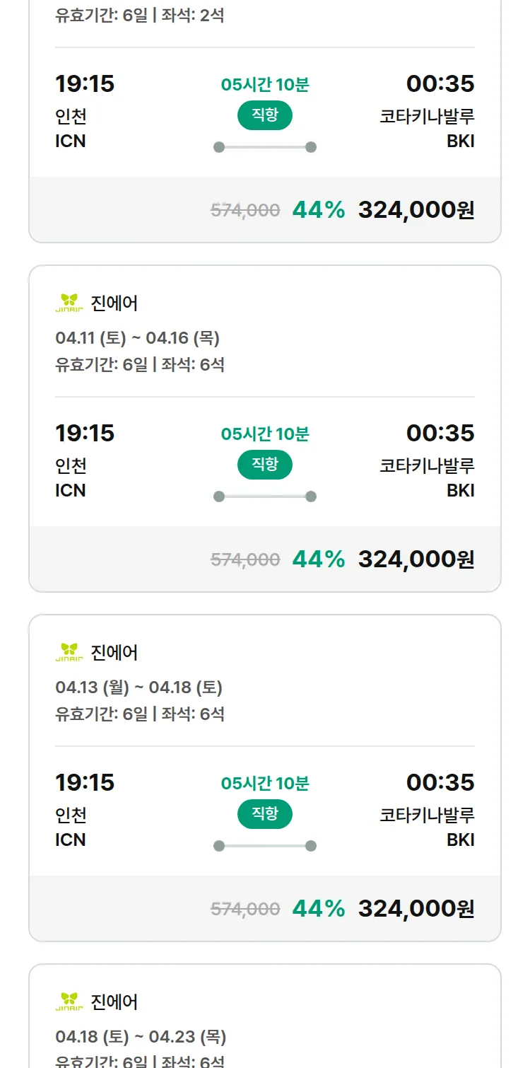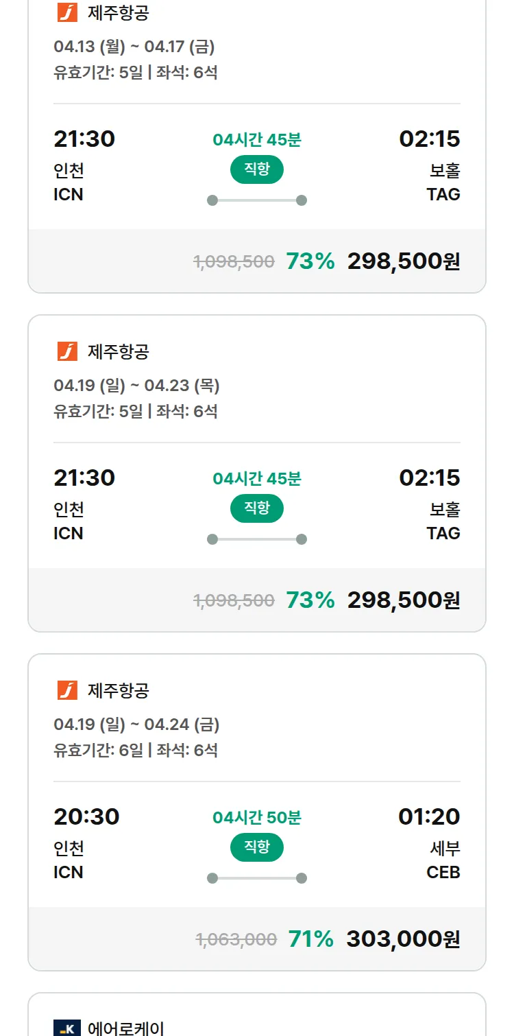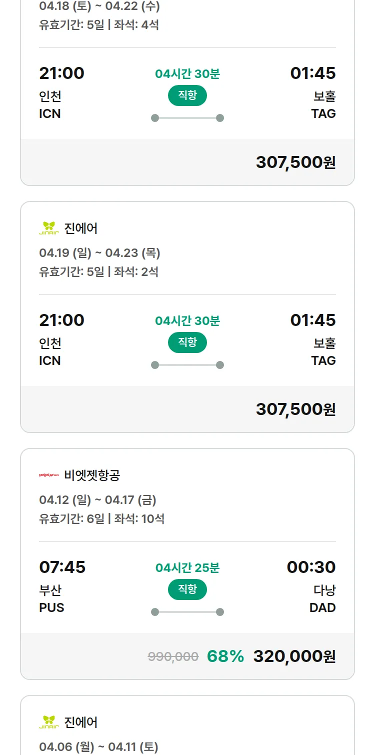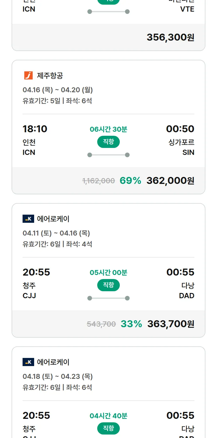 (3월 24일(화)) 땡처리 특가 항공권