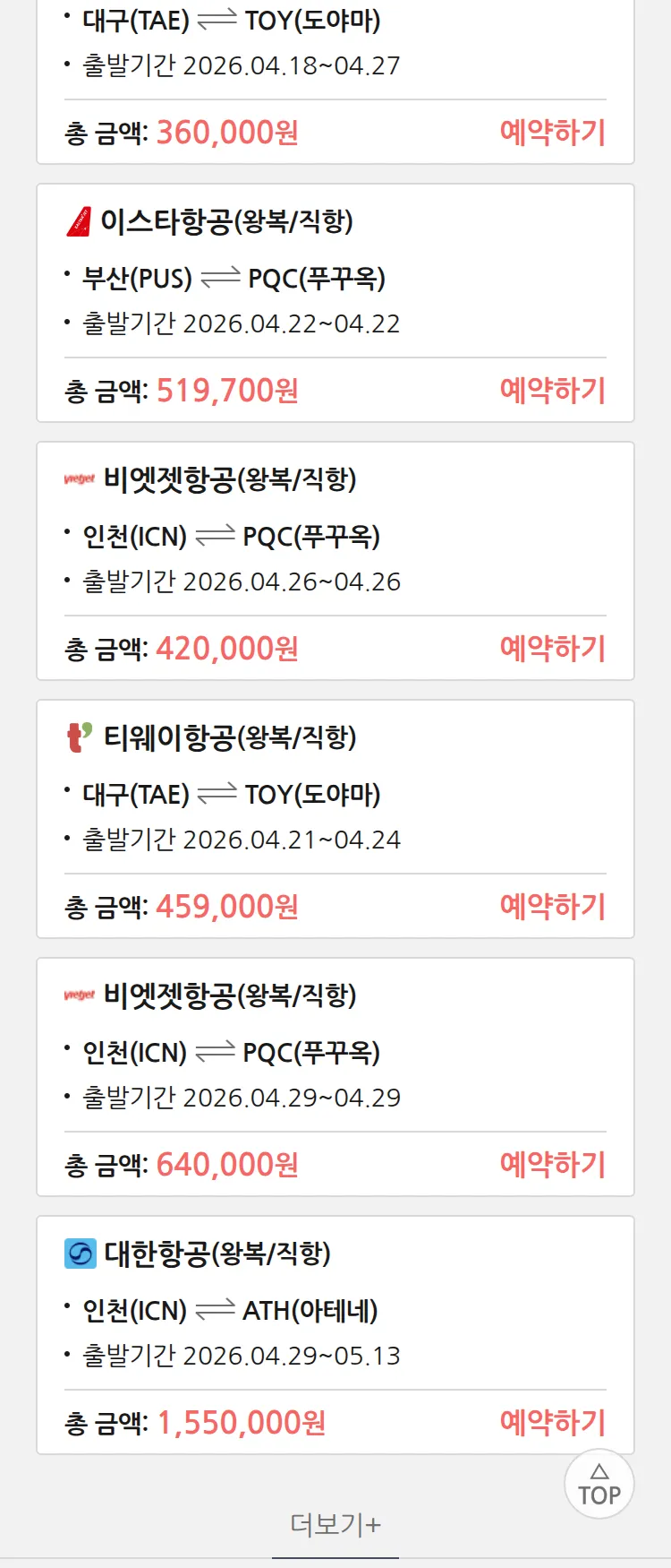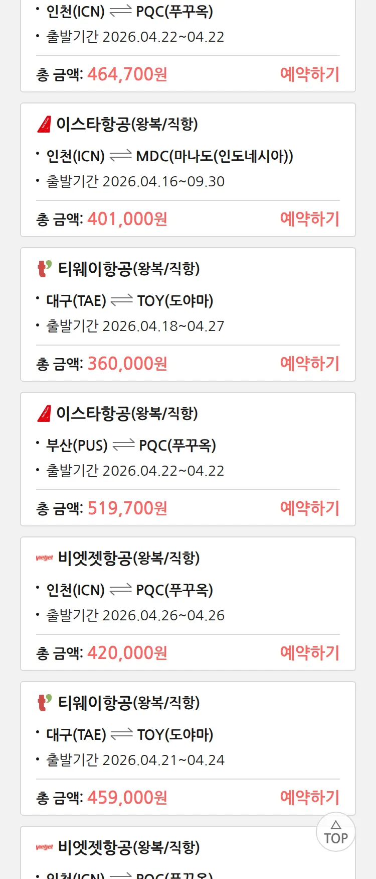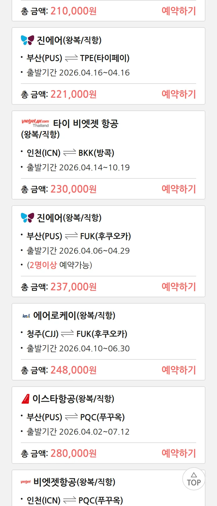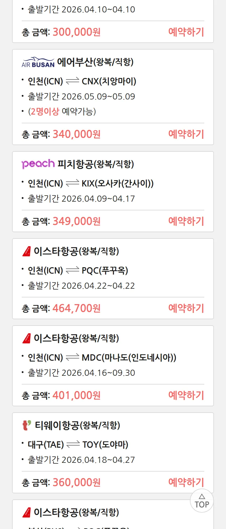 (3월 26일(목)) 땡처리 특가 항공권