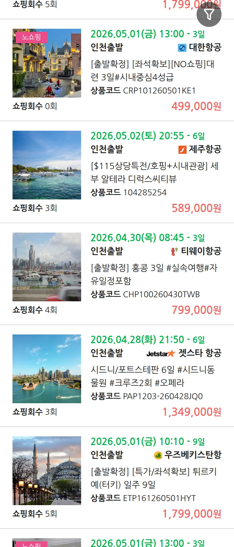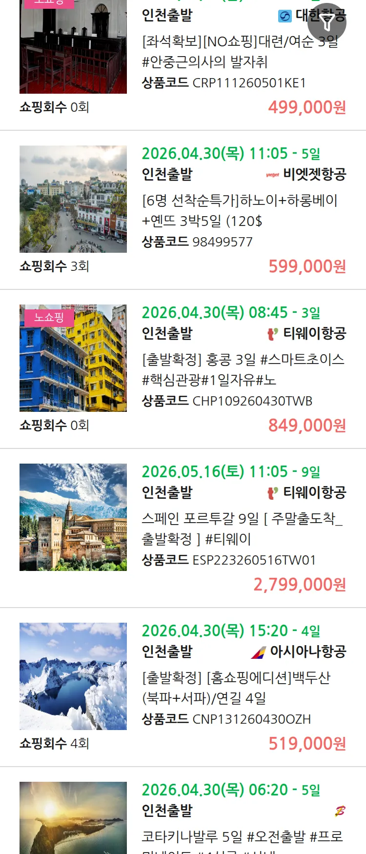 (3월 26일(목)) 땡처리 99.9% 확정 패키지