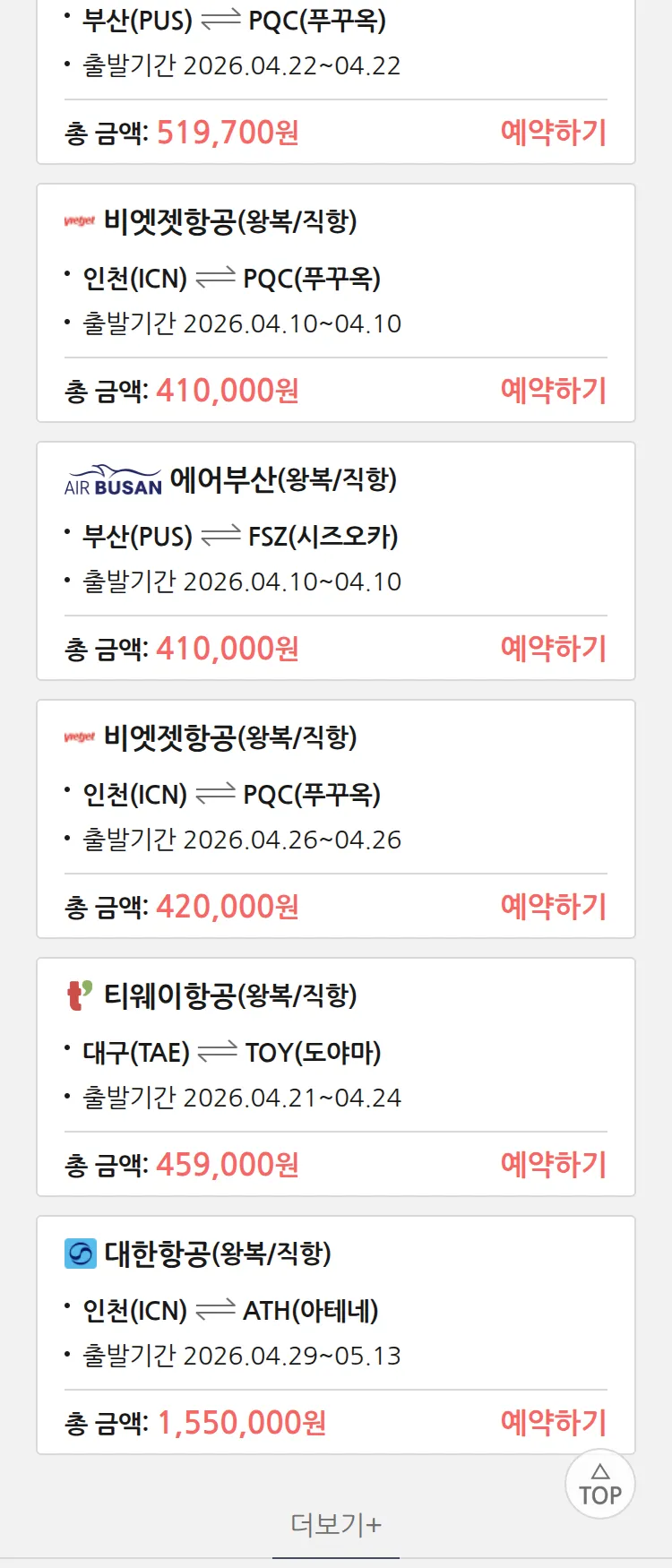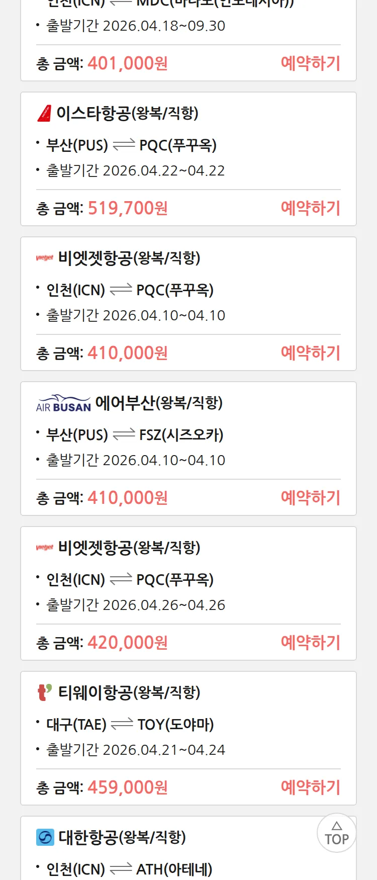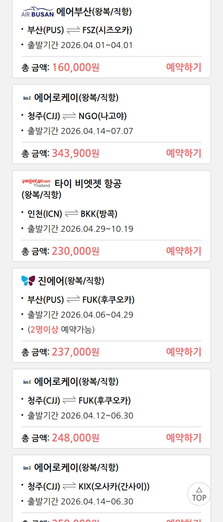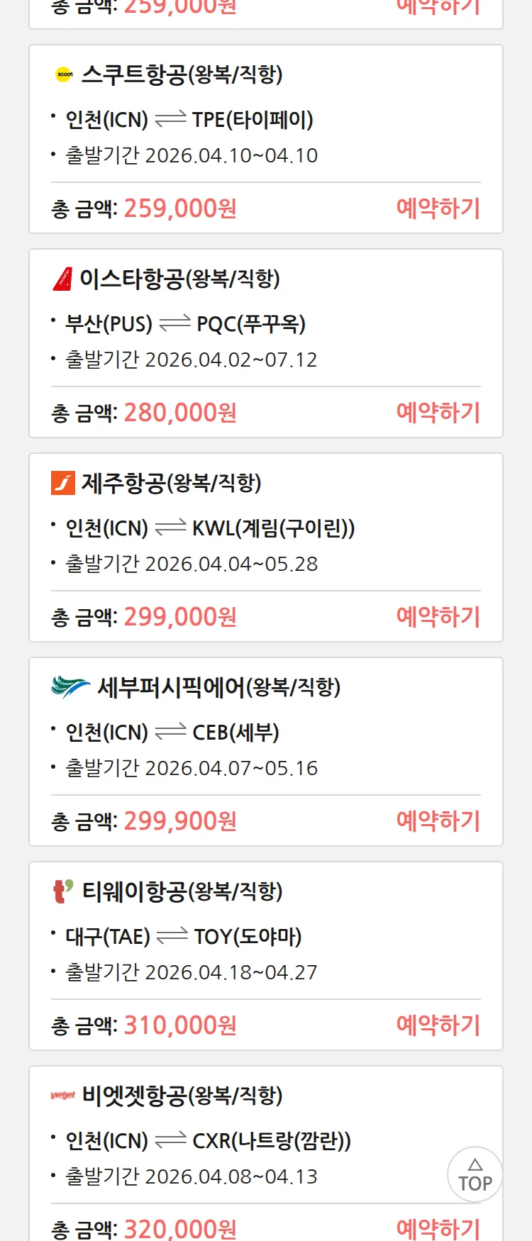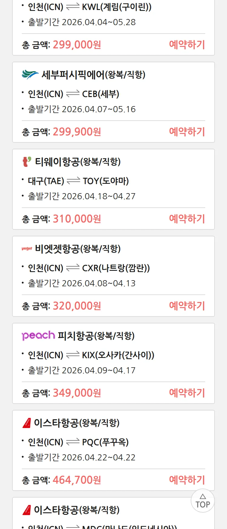 (3월 26일(목)) 땡처리 특가 항공권