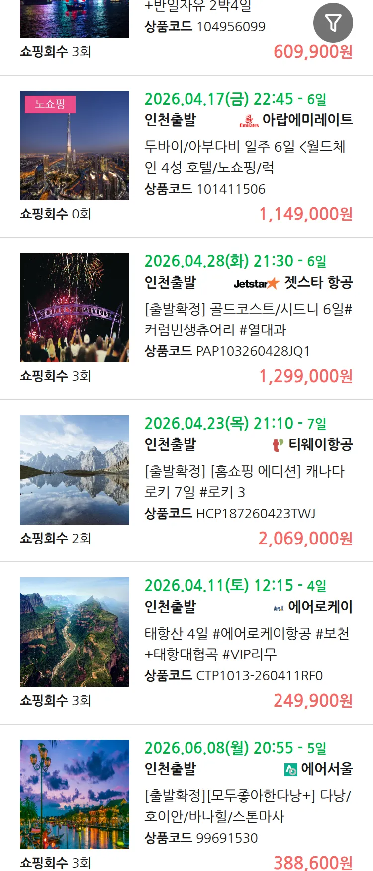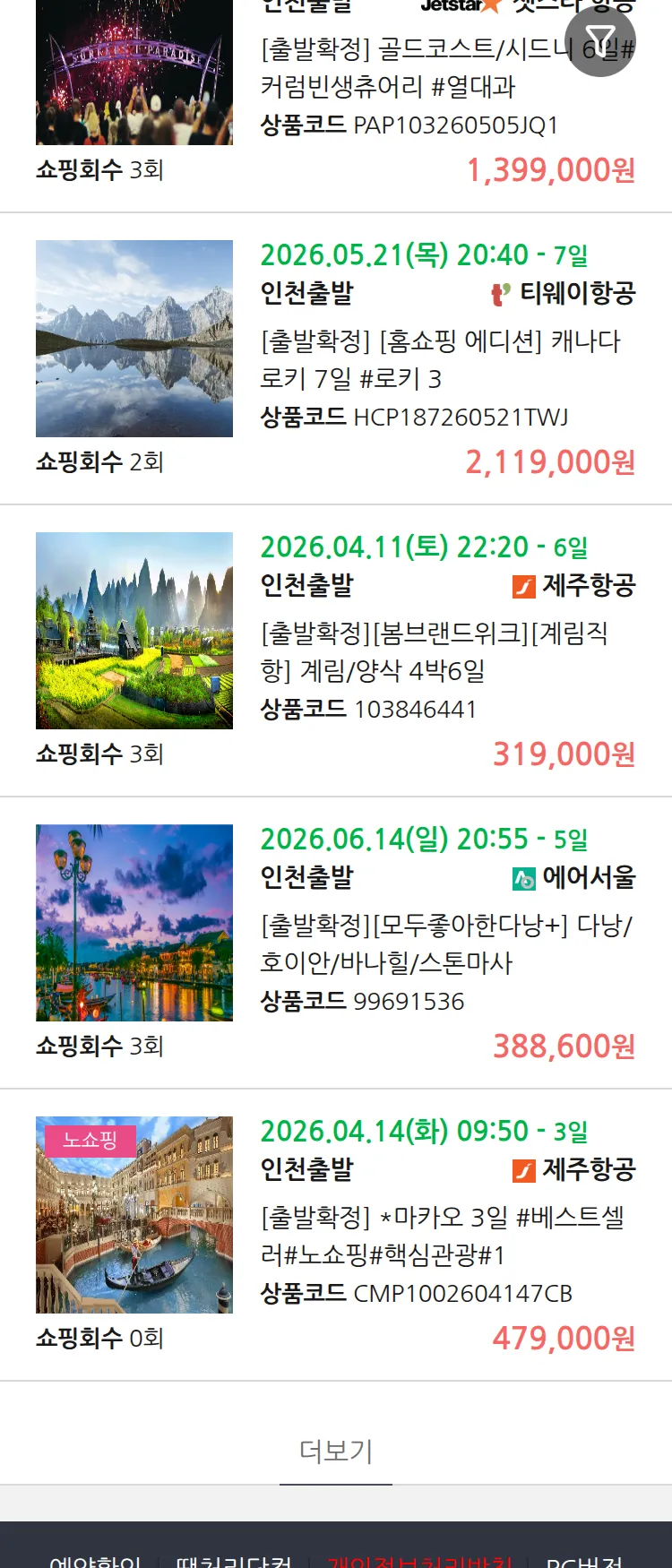 (3월 26일(목)) 땡처리 99.9% 확정 패키지