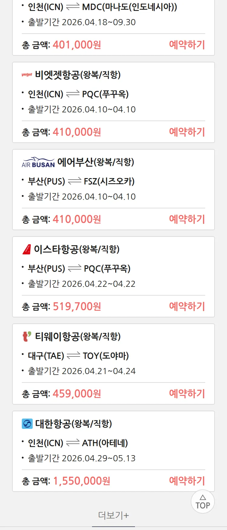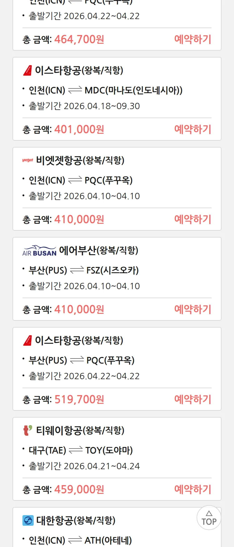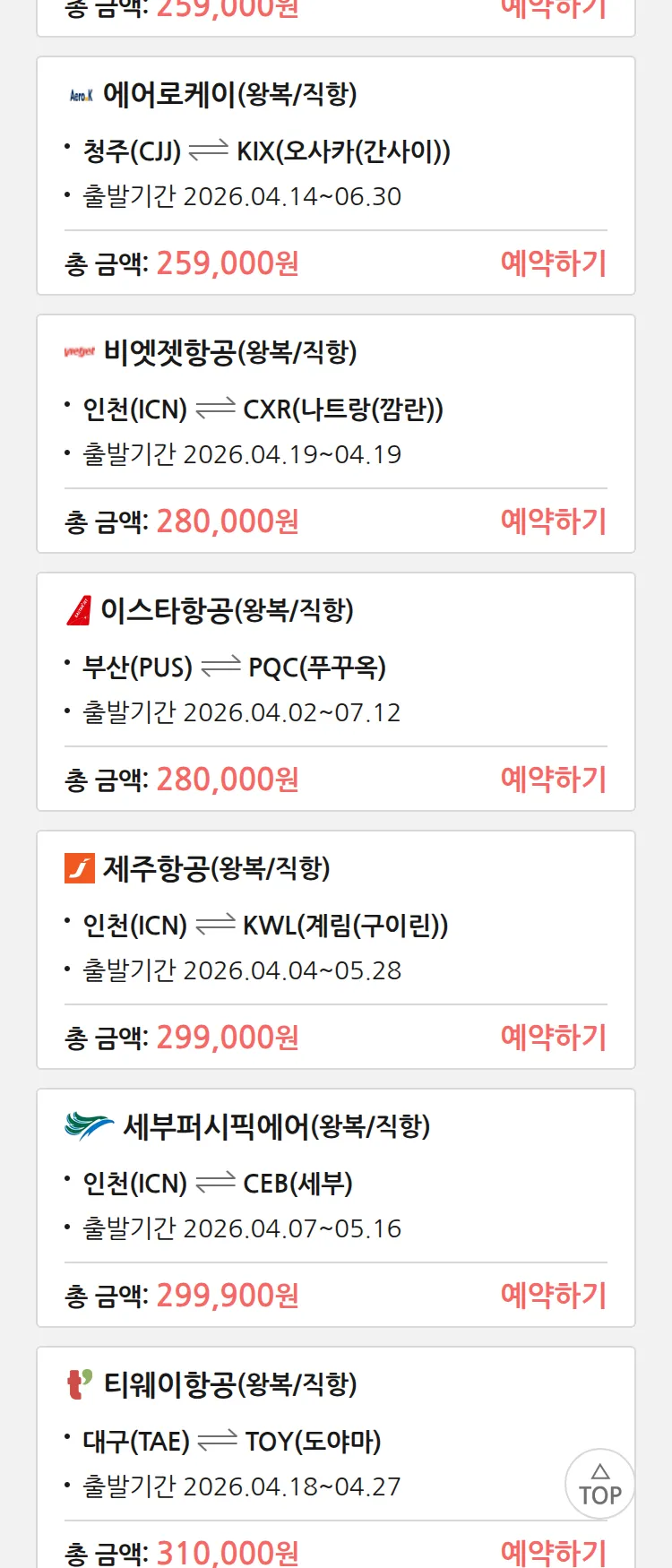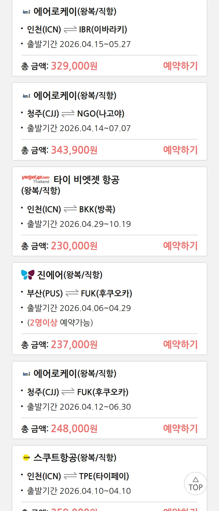 (3월 28일(토)) 땡처리 특가 항공권