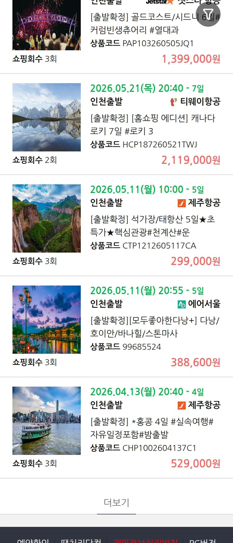 (3월 29일(일)) 땡처리 연휴 패키지 패키지