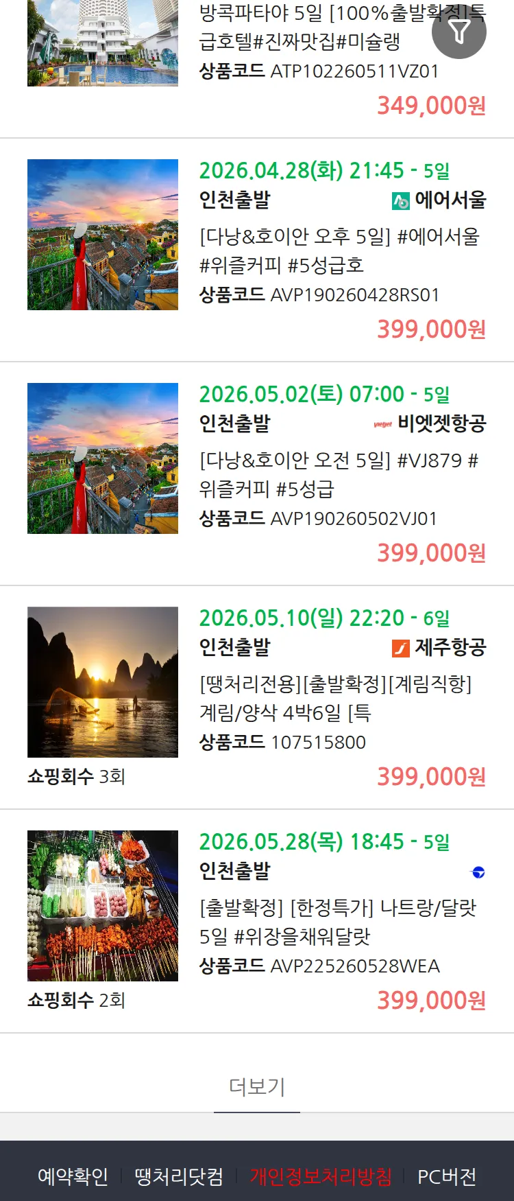 (4월 23일(목)) 땡처리 99.9% 확정 패키지