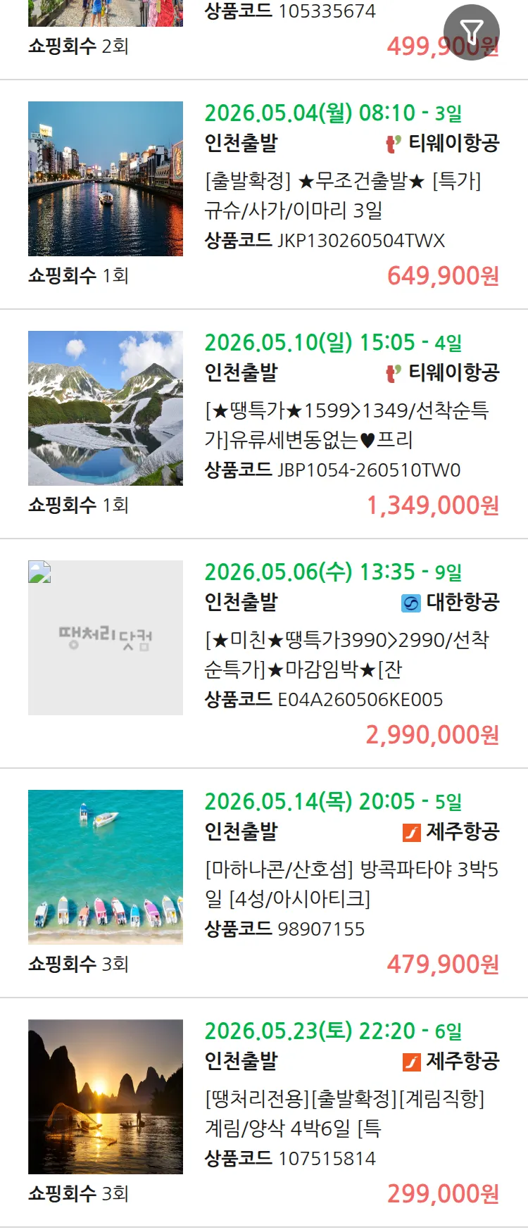 (4월 13일(월)) 땡처리 연휴 패키지 패키지