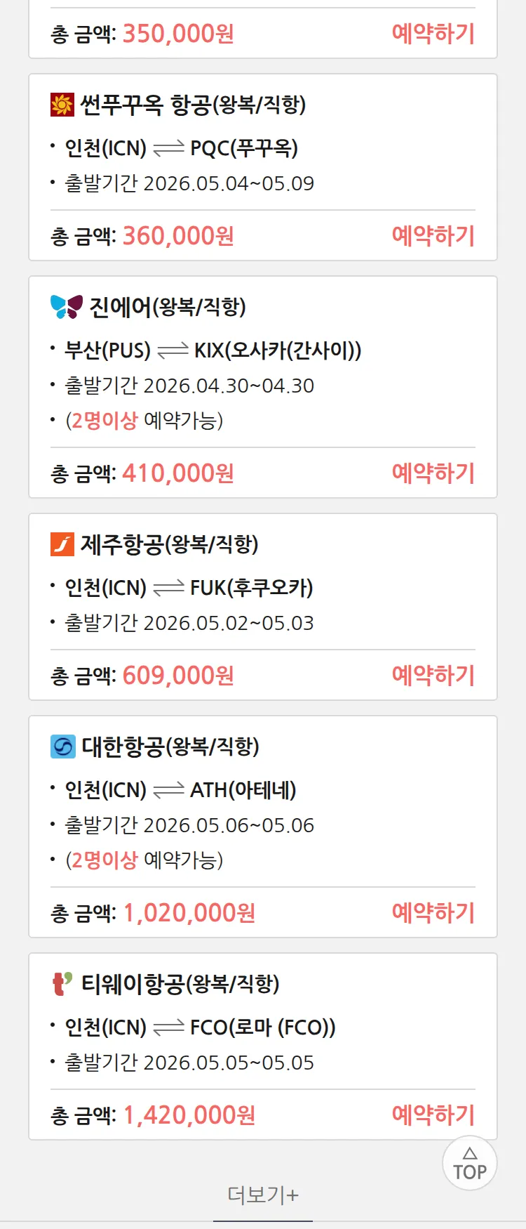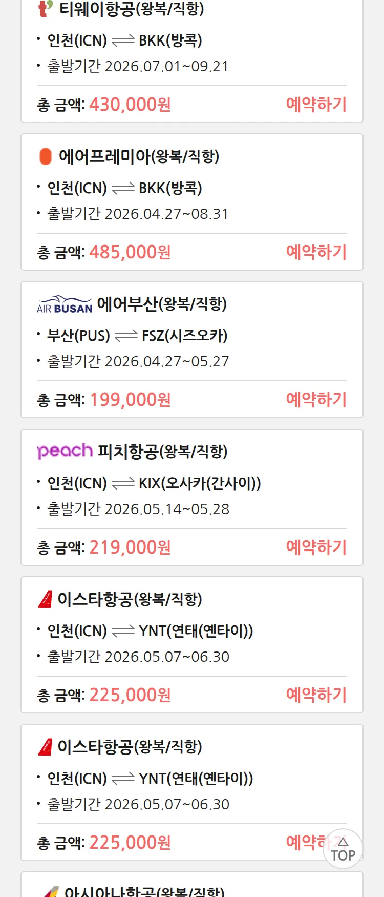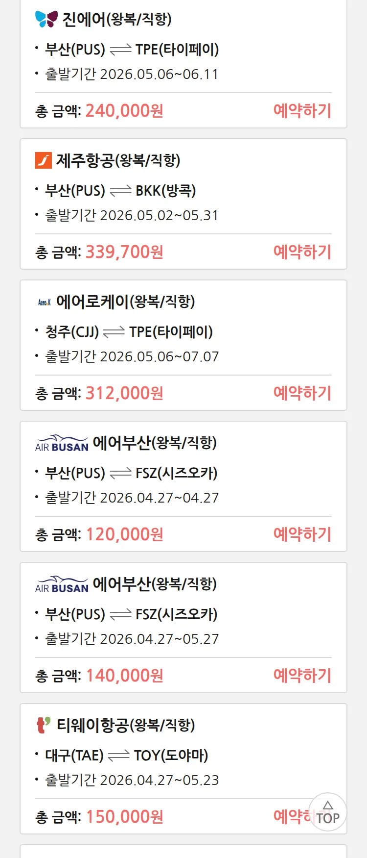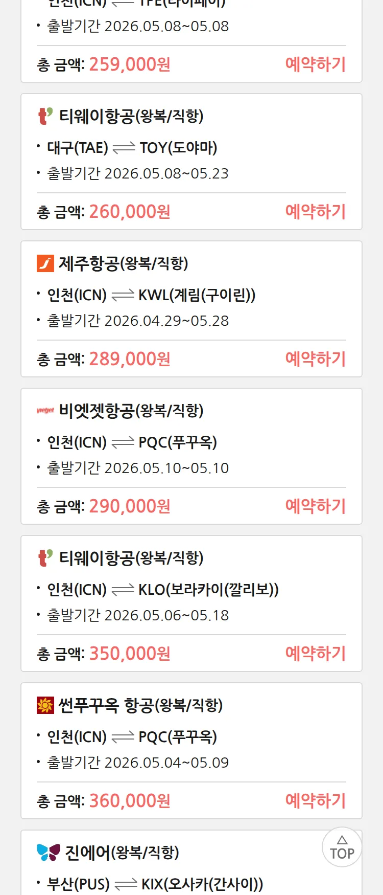 (4월 24일(금)) 땡처리 특가 항공권