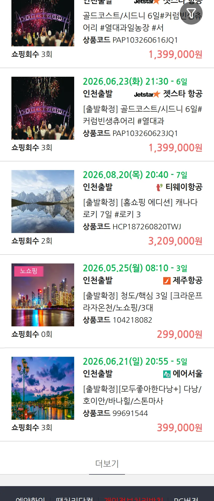 (4월 23일(목)) 땡처리 99.9% 확정 패키지