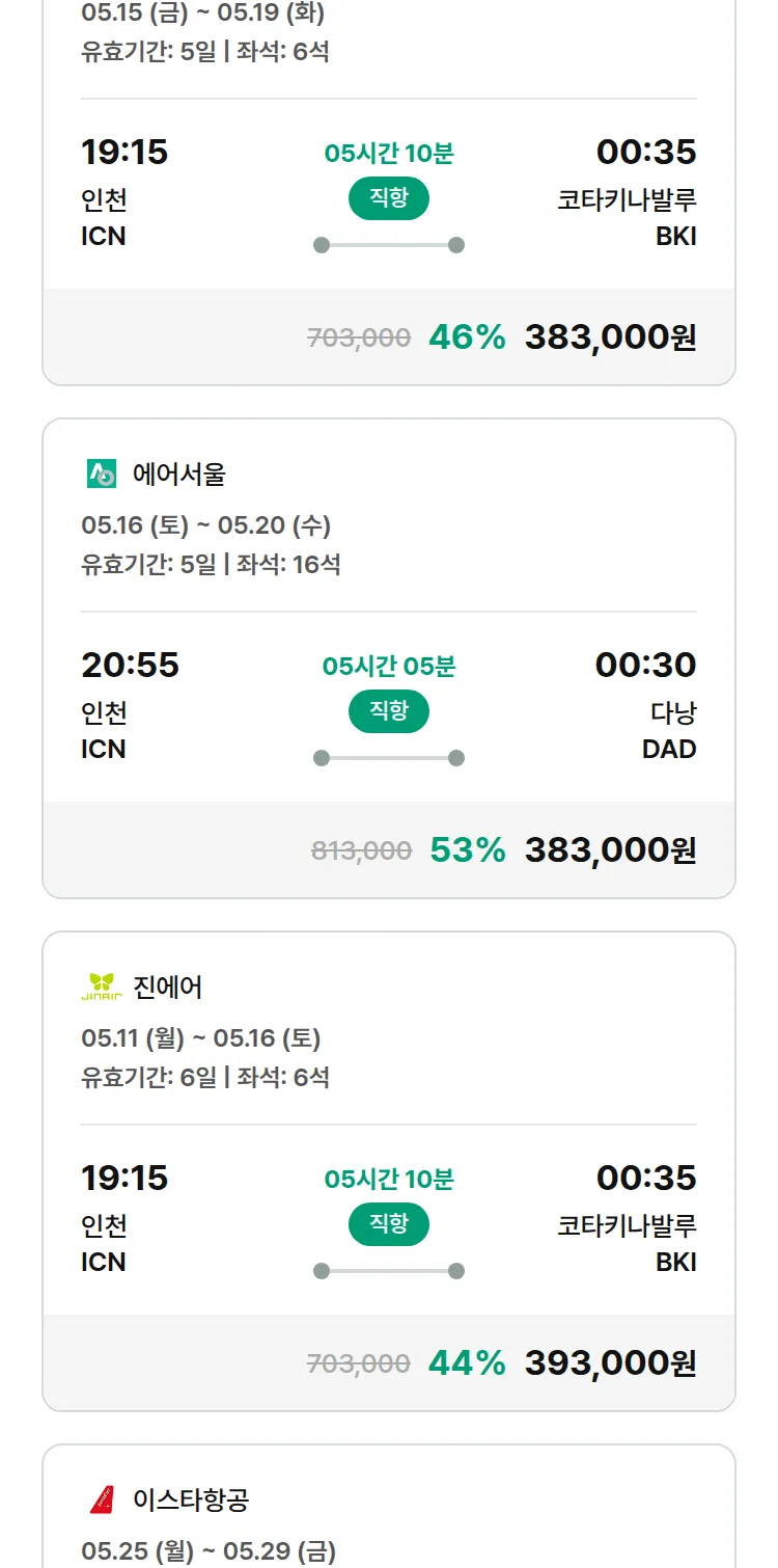 (4월 25일(토)) 모두투어 동남아 특가 항공권