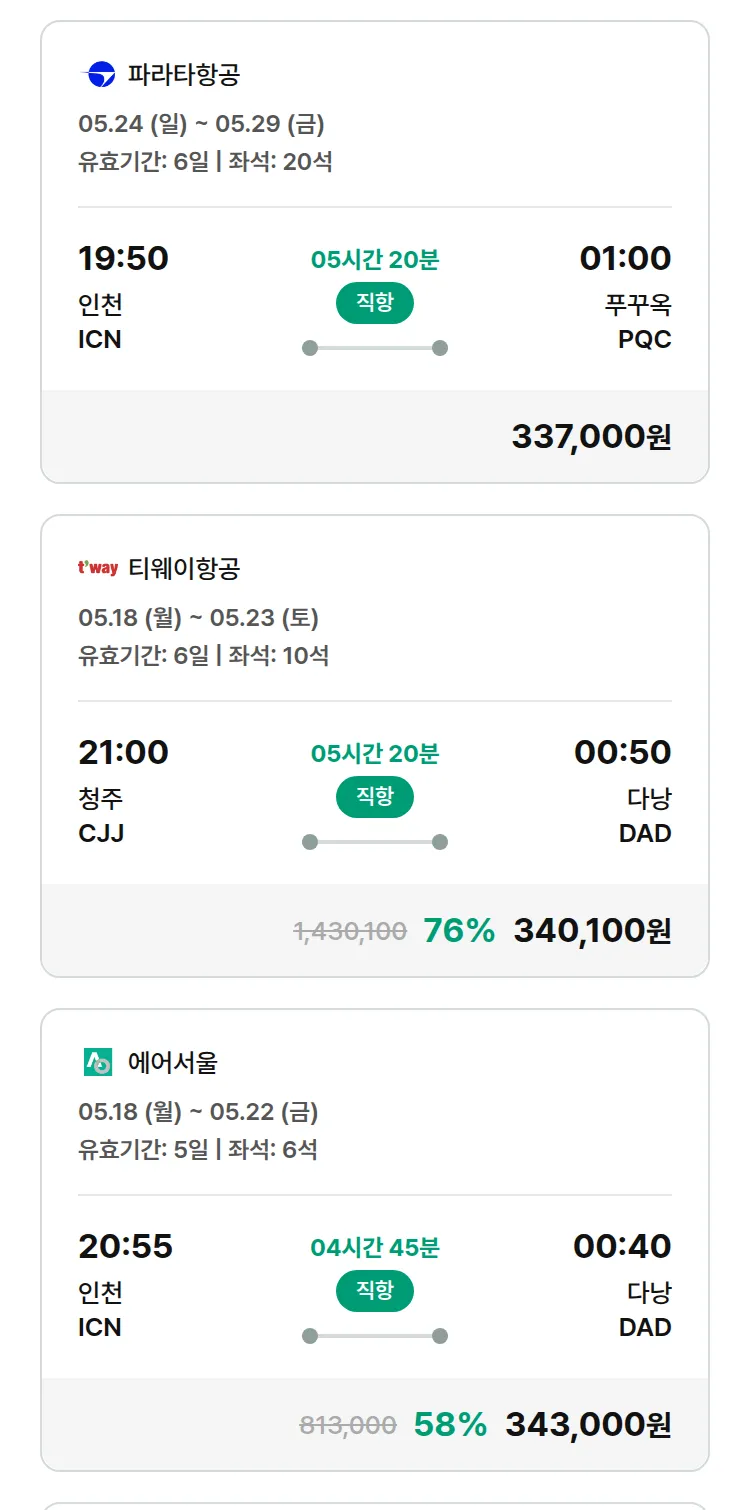 (4월 24일(금)) 모두투어 동남아 특가 항공권